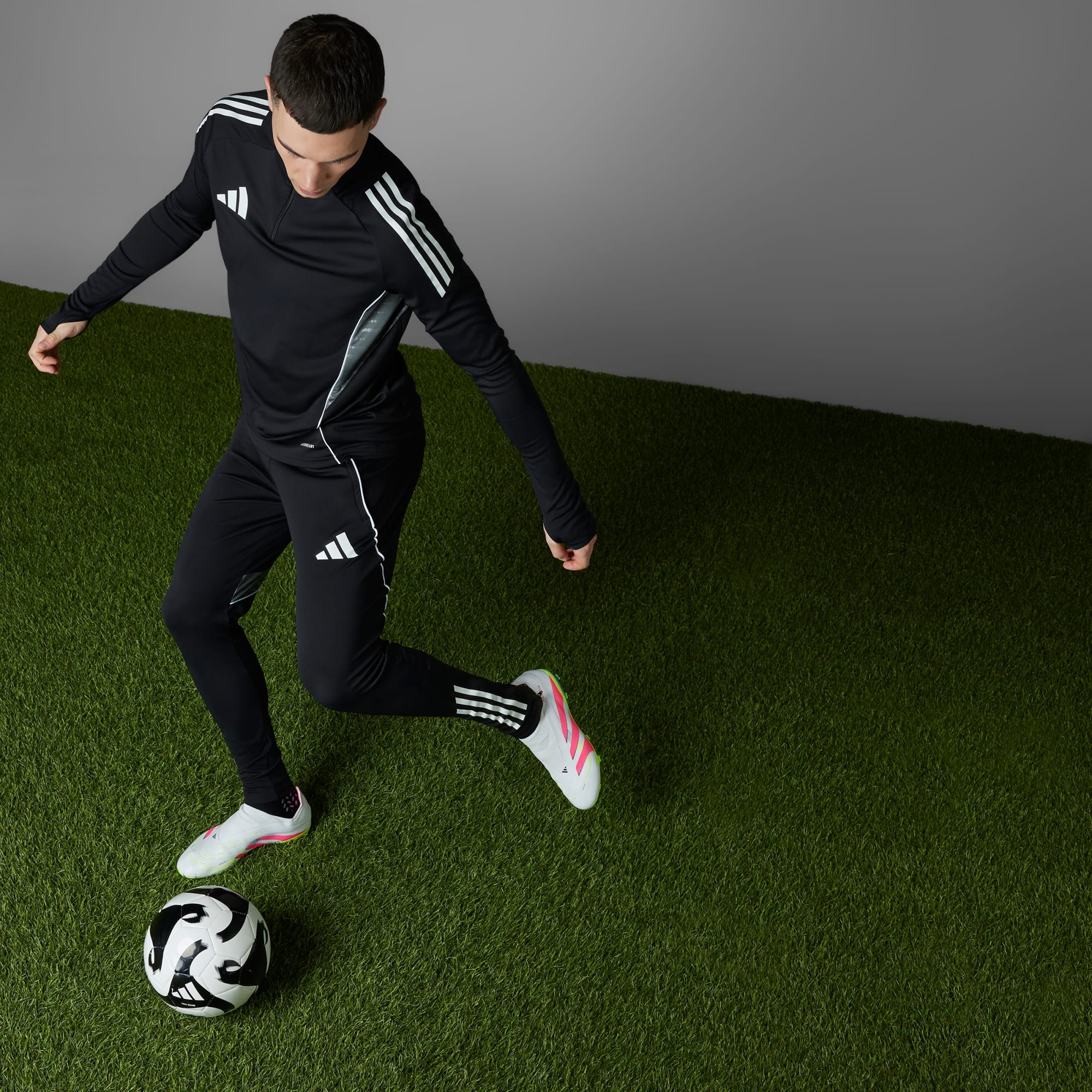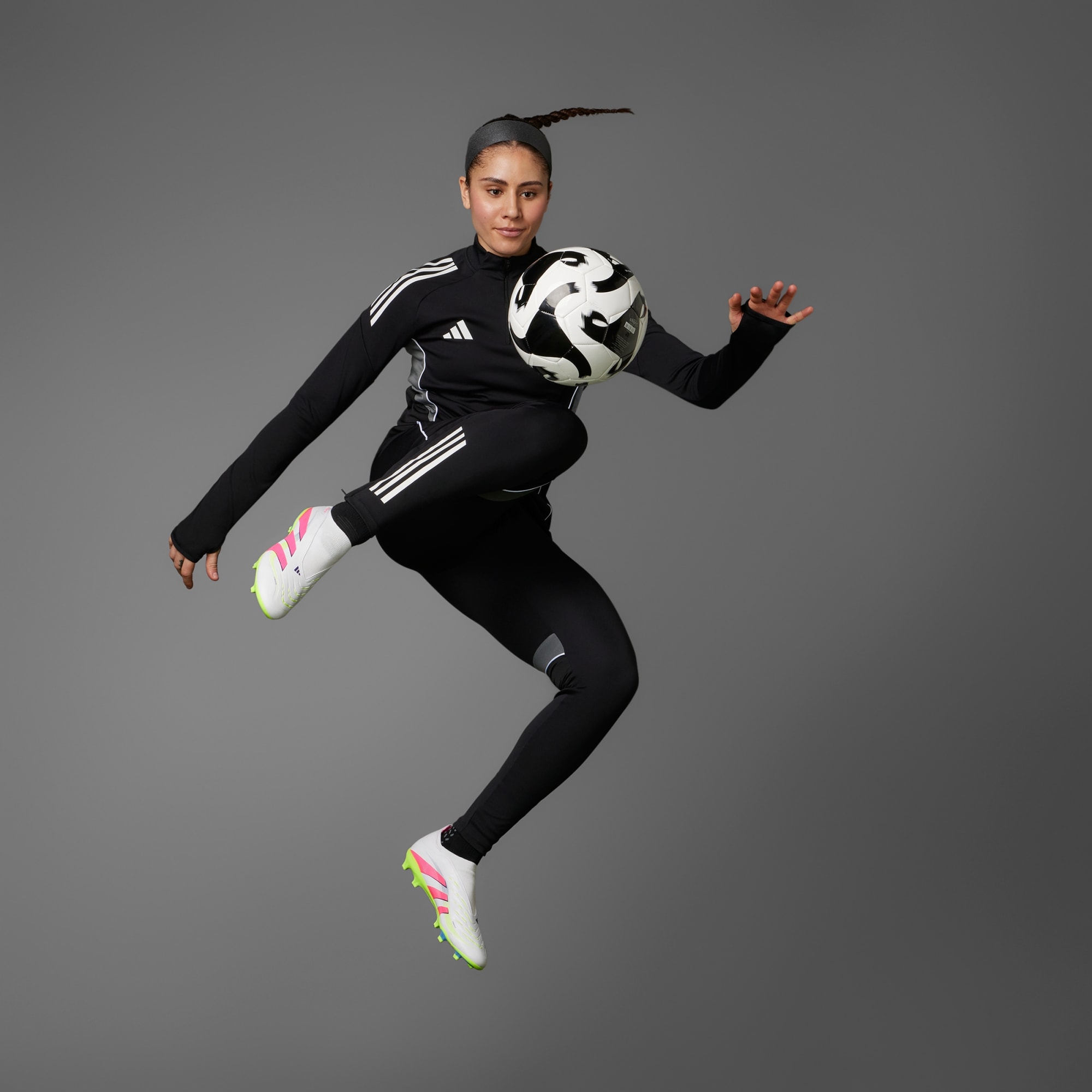 Gå ind til enhver kamp vel vidende, at du kommer til at score i de her adidas Predator League-fodboldstøvler. Hybridfeel-overdelen har en heldækkende 3D-tekstur, en snøreløs konstruktion og skridsikre Strikescale-finner, der hjælper dig med at kontrollere bolden under spark. En Controlplate-ydersål sikrer, at du er på det rigtige sted på det rigtige tidspunkt på forskellige underlag.