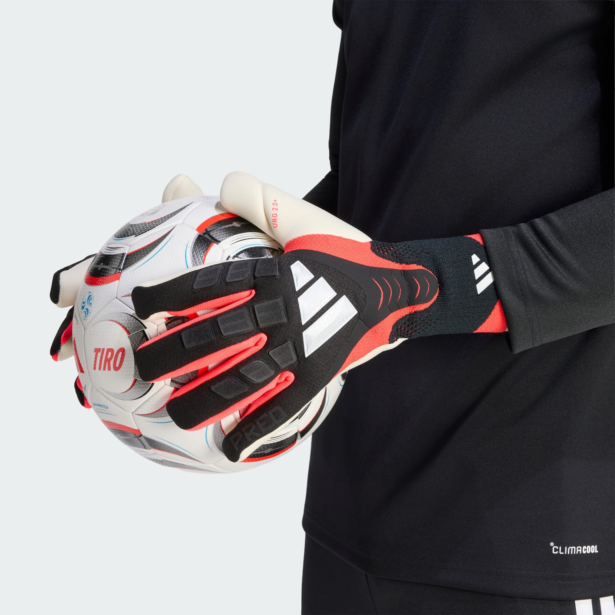 Målmandshandsker med URG 2.0+-teknologi, der giver greb og komfort.