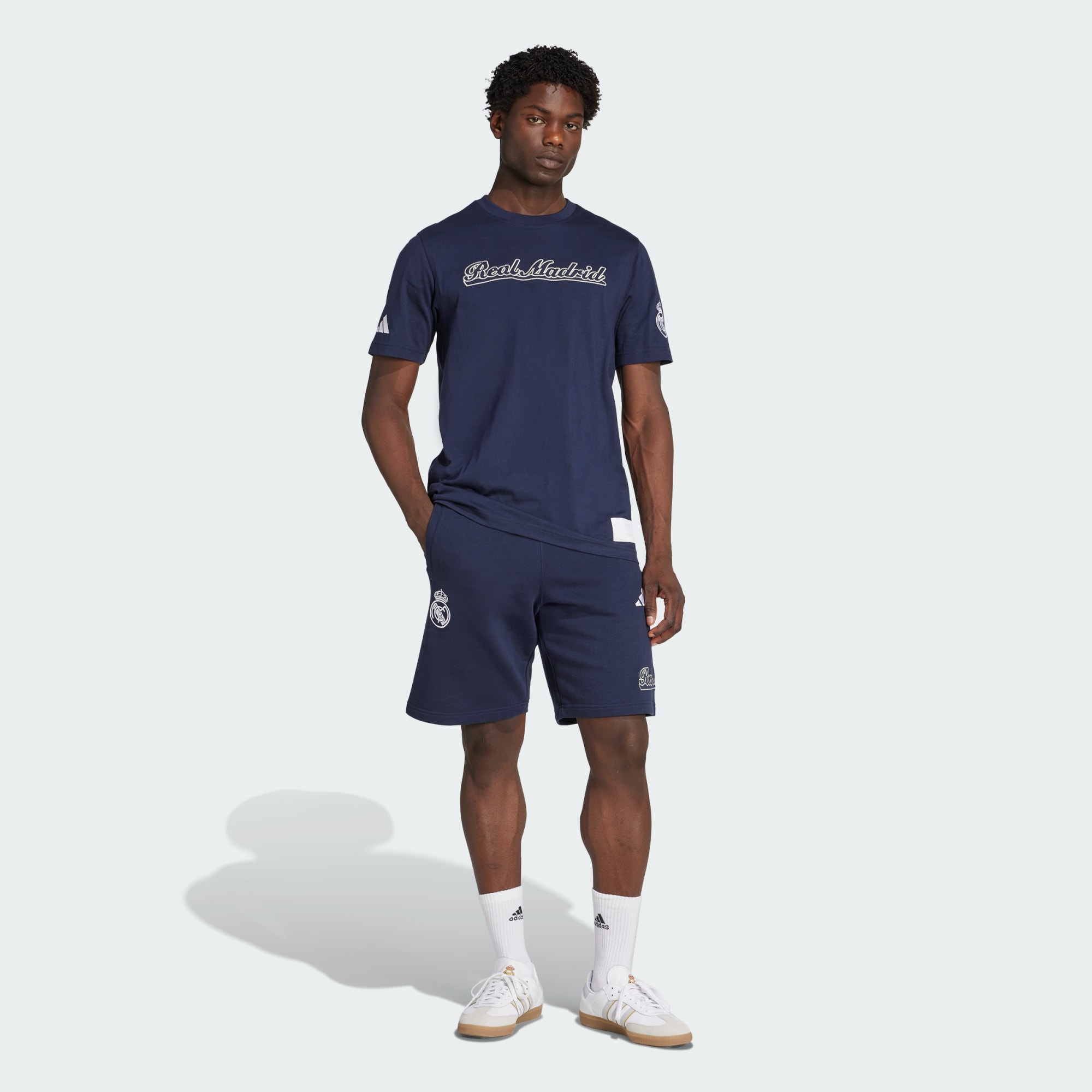 Et fodboldlook med et transatlantisk twist. Disse shorts er en del af Real Madrids US Pack-sortiment fra adidas og fusionerer det smukke spil med baseballkultur. Et stiliseret holdnavn og klubmærke understreger din fandom. Blødt fransk frotté sikrer, at du forbliver behagelig, mens du laver et sportsligt statement.