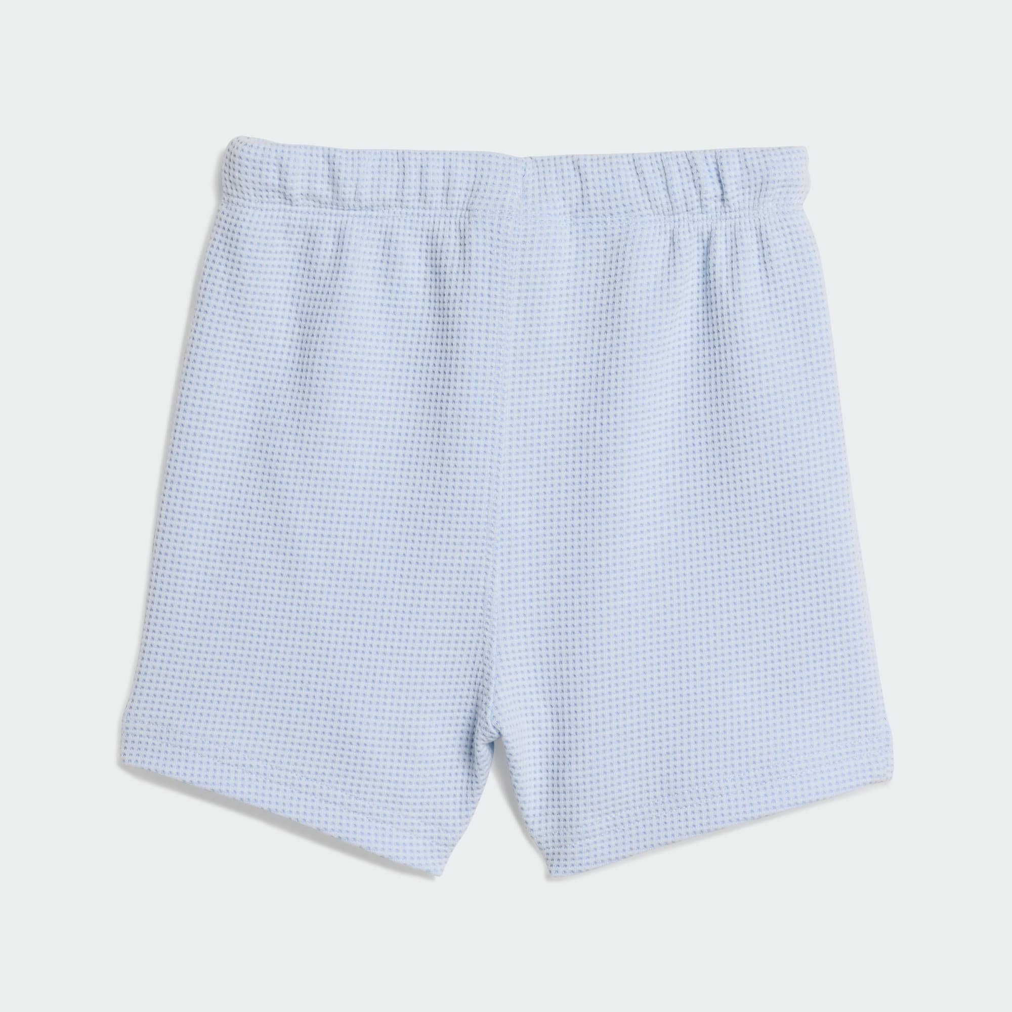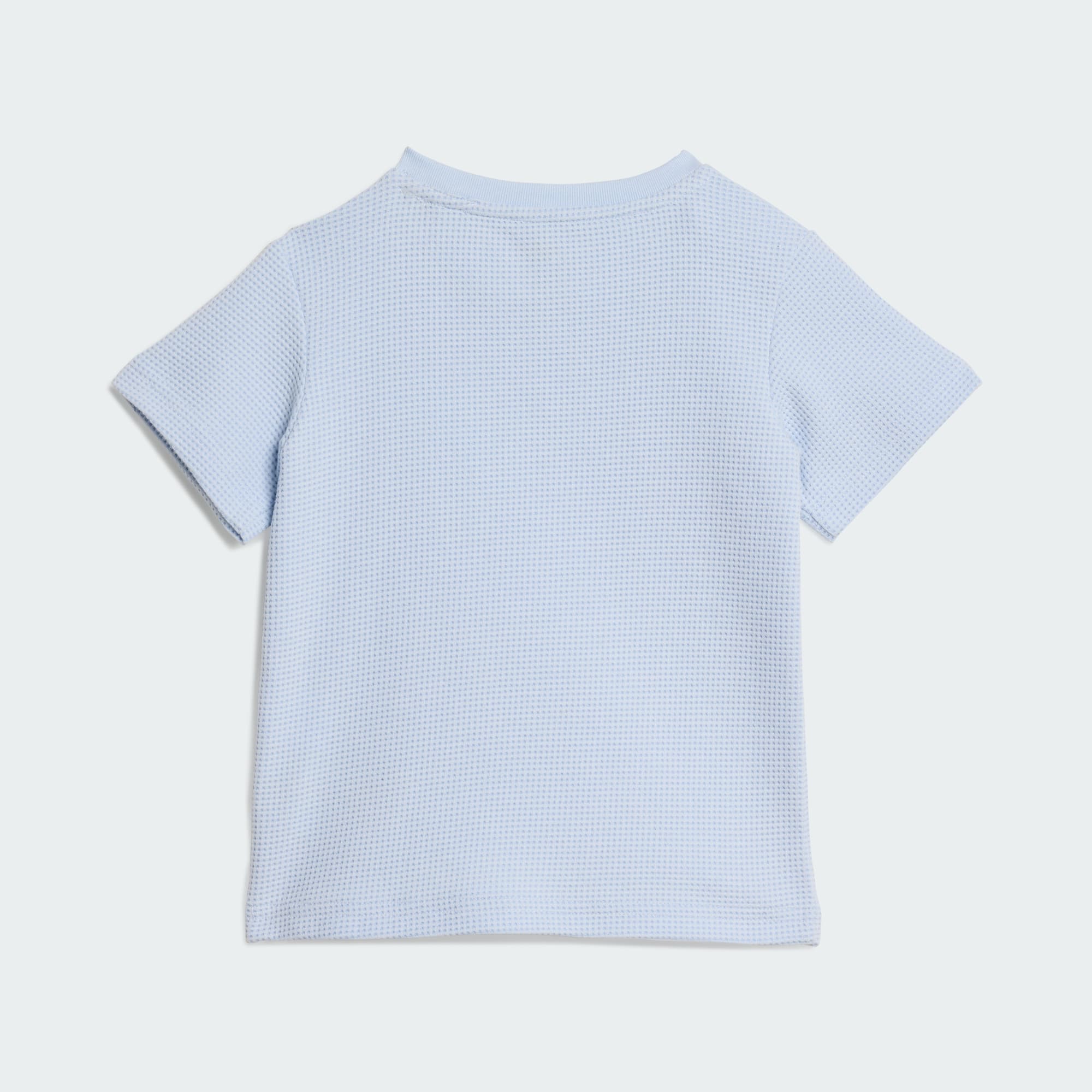 Præsentation af Regular Waffle T-shirt-sæt med shorts, hvor hverdagskomfort møder tidløs stil. Dette sæt er designet til de små og kan nemt supplere forskellige looks. Dobbeltstrikket stof giver en blød følelse mod huden for komfort hele dagen. Toppen har en normal pasform med en rund halsudskæring, der giver en klassisk silhuet, der passer godt til shorts med mellemhøj talje. Snøren i taljen giver dig en tætsiddende pasform, men tillader fri bevægelse under leg eller udflugter. Dette sæt er udsmykket med det ikoniske adidas-logo broderet på venstre bryst og ben og giver et moderne twist til mærkets arv. Omfavn Originals-ånden med dette alsidige ensemble, der tilbyder komfort og stil i lige mål, til dit barns hverdagseventyr.