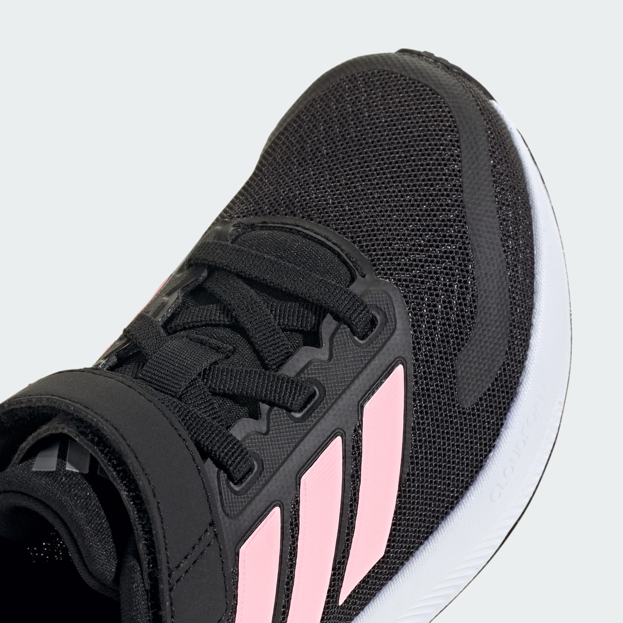 Disse sporty og fjedrende adidas-sneakers til børn holder trit med selv de hurtigste løbesko. Letvægtsoverdelen er foret for at give en blød fornemmelse, mens Cloudfoam-støddæmpningen giver let støtte hele dagen. Det kunne ikke være nemmere at gøre sig klar til at komme afsted takket være de strækbare snørebånd, der fuldendes af en rem med burrebånd foroven, som børnene nemt kan lukke på et øjeblik.