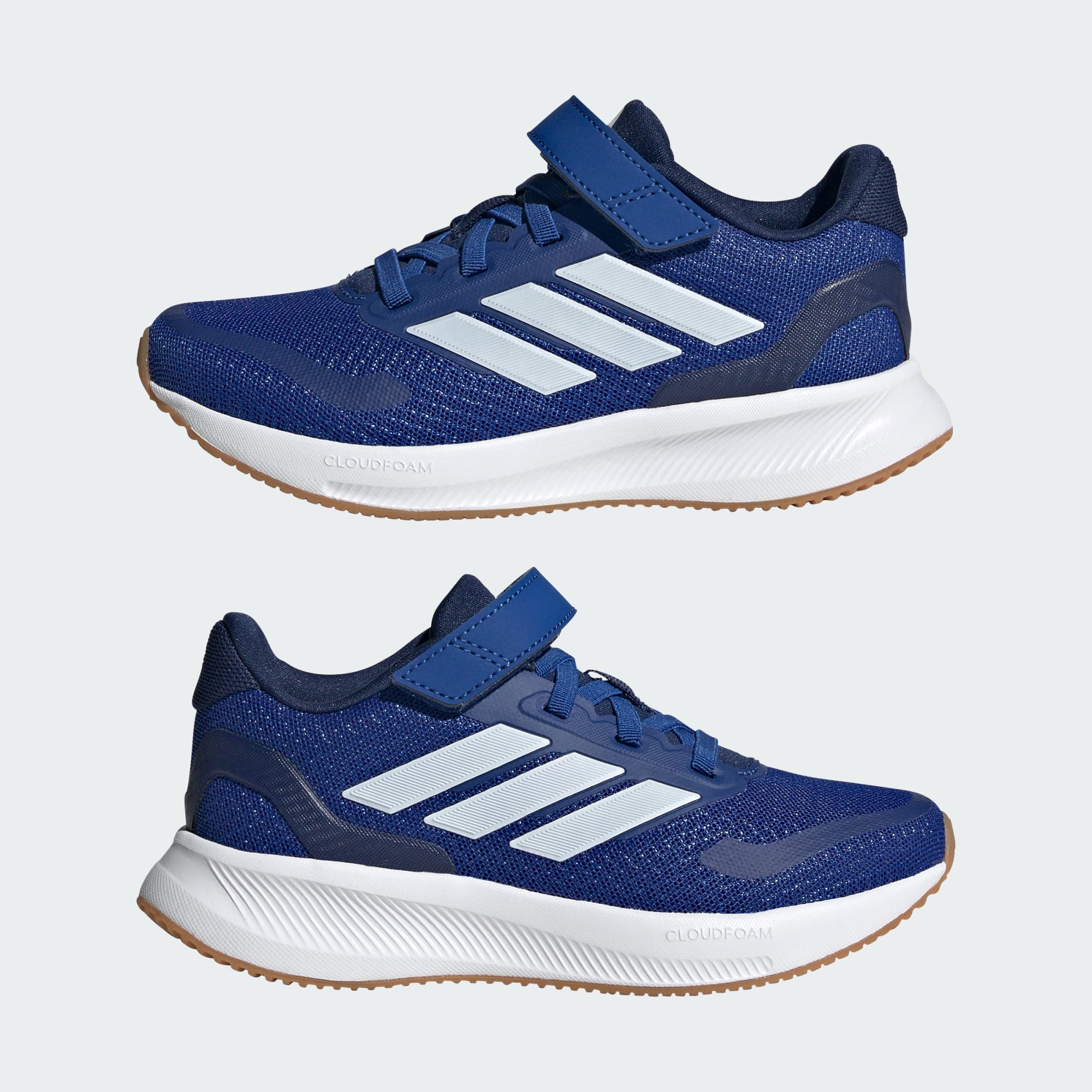 Disse sporty og fjedrende adidas-sneakers til børn holder trit med selv de hurtigste løbesko. Letvægtsoverdelen er foret for at give en blød fornemmelse, mens Cloudfoam-støddæmpningen giver let støtte hele dagen. Det kunne ikke være nemmere at gøre sig klar til at komme afsted takket være de strækbare snørebånd, der fuldendes af en rem med burrebånd foroven, som børnene nemt kan lukke på et øjeblik.