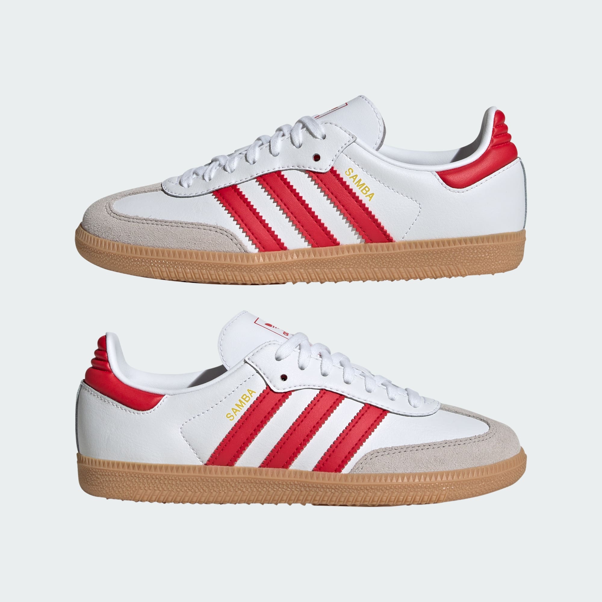 Hvis du rejste tilbage i tiden til 1960'erne, ville du finde professionelle fodboldspillere iført adidas-Sambas ligesom disse sko i juniorstørrelse. Altså, næsten ligesom dem. De har fået en genopfriskning til den næste generation og har en blød indersok, der føles behagelig at have på hele dagen. En overdel i læder, en sål i gummi og 3-Stripes forbliver klassiske.
