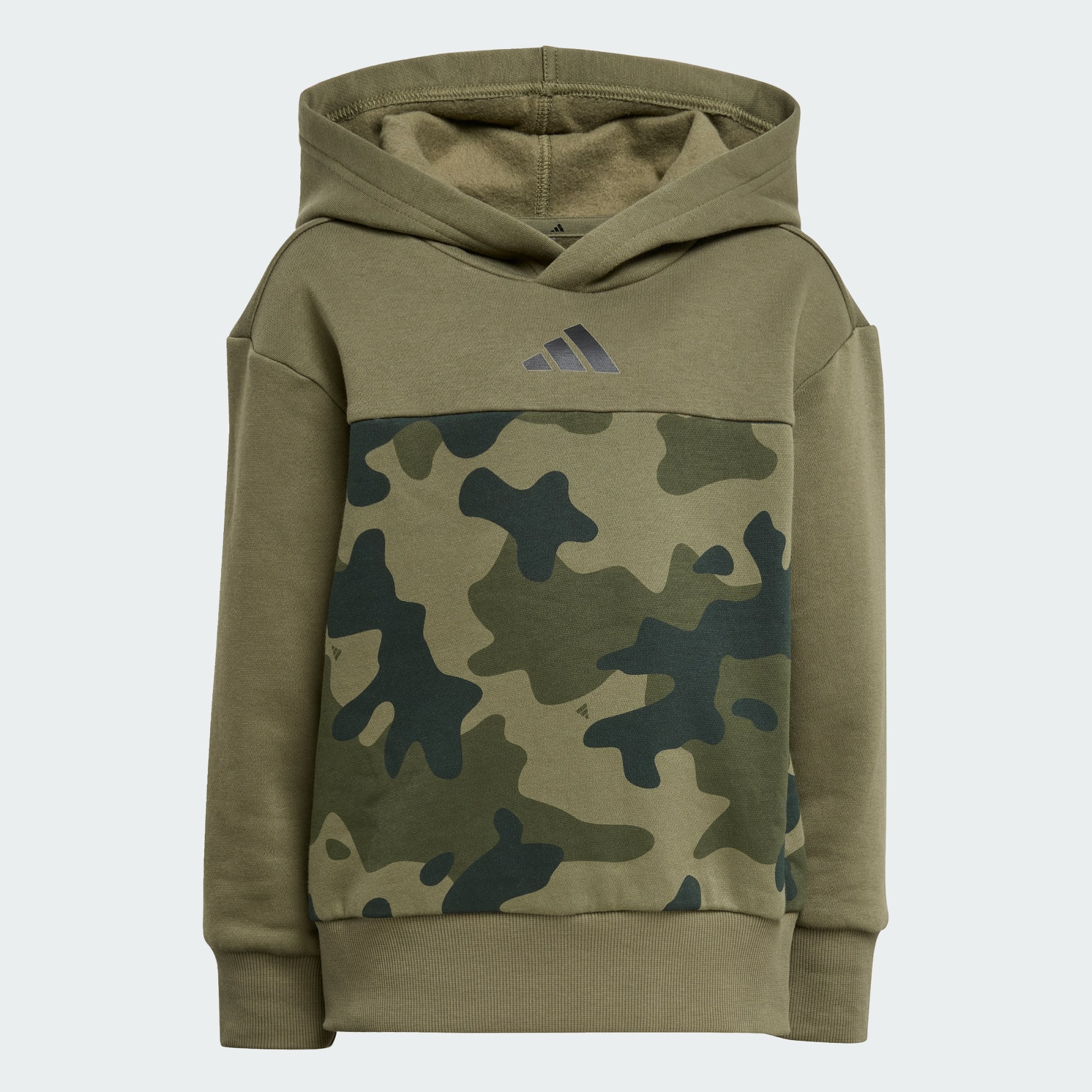 Dette adidas-joggingsæt er designet til aktive børn. Fleecedesignet holder dem varme, når de er på farten, og camo-printet tilføjer et sjovt twist til deres hverdagseventyr. Mix og match pullover-hættetrøjen og de tilhørende joggingbukser med deres andre favoritter, og opnå en ubesværet sporty stil.