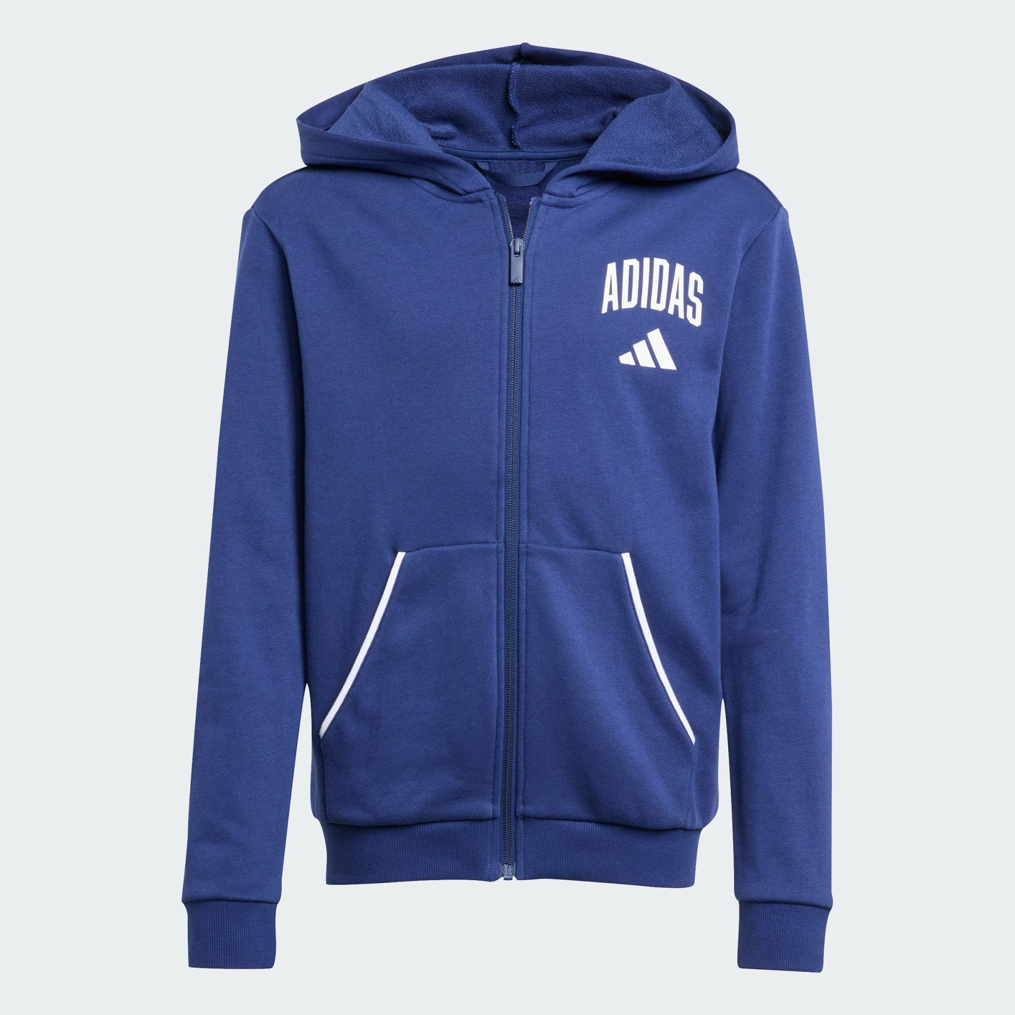 Rock a collegiate-inspired look in this juniors' hoodie. Whether you're heading to class or hanging out with friends, the soft French terry build and kangaroo pockets keep you comfortable all day. Contrast piping and a minimalist adidas logo connect you to athletic culture.