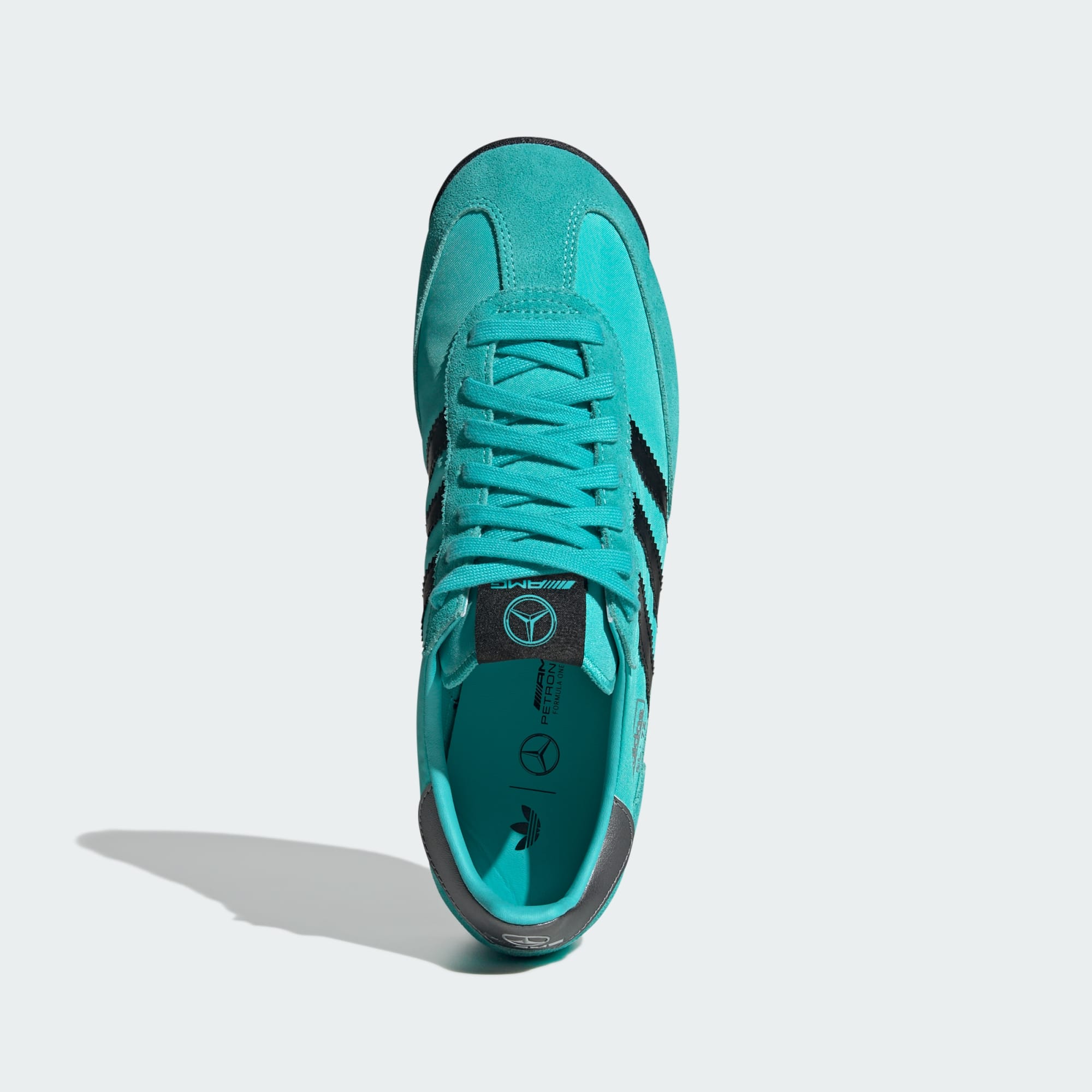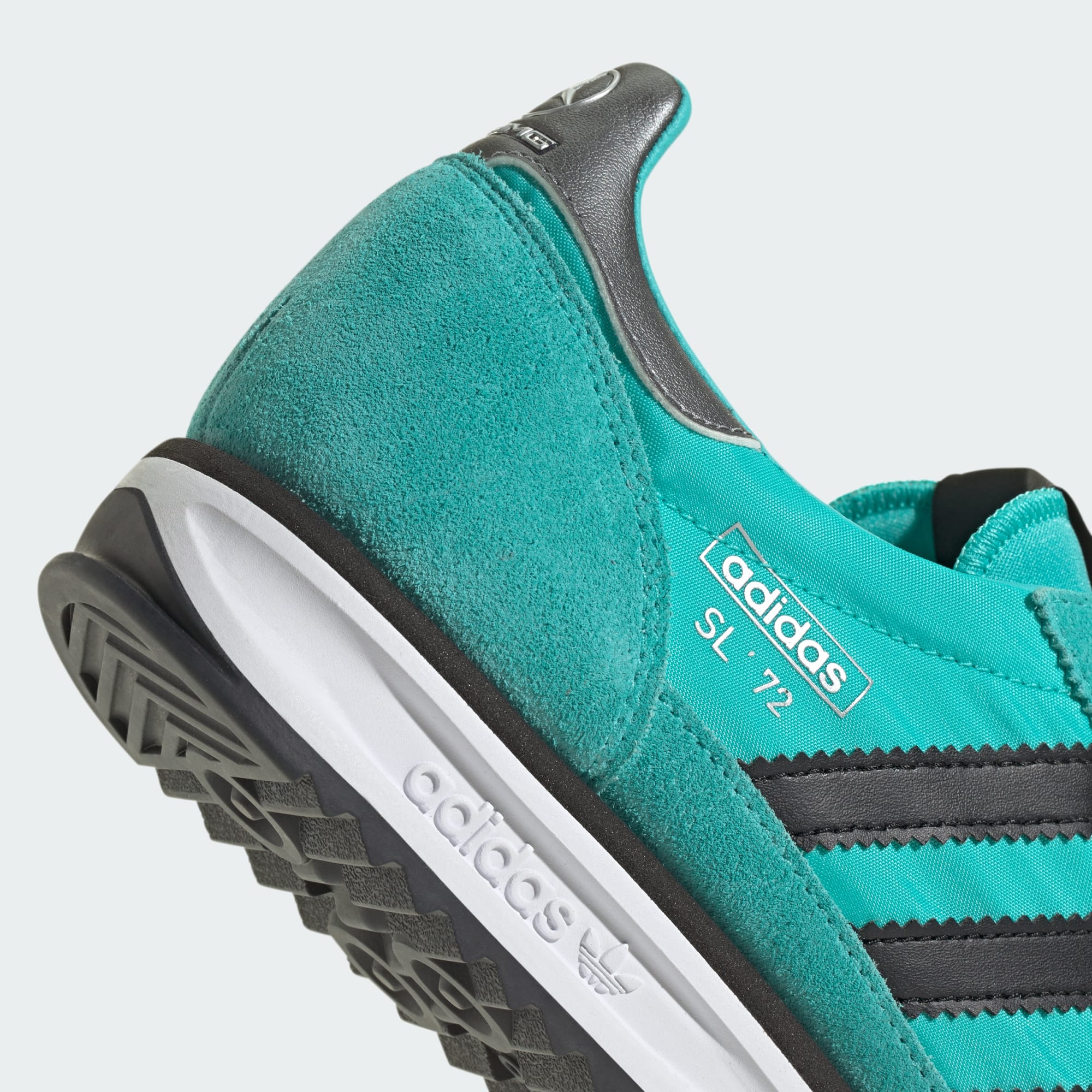 Siden 1972 har SL 72-skoene fra adidas sat deres præg på løbeverdenen. Nu er de gået sammen med Mercedes - AMG Petronas Formula One Team. Overdelen i nylon har bløde ruskindspåsætninger, der skaber et vintagelook, mens en EVA-mellemsål og en rillet ydersål i gummi giver godt greb på underlaget og støddæmper hvert skridt. Disse sko er skabt til at stå distancen, uanset om du er på banen eller på gaden.