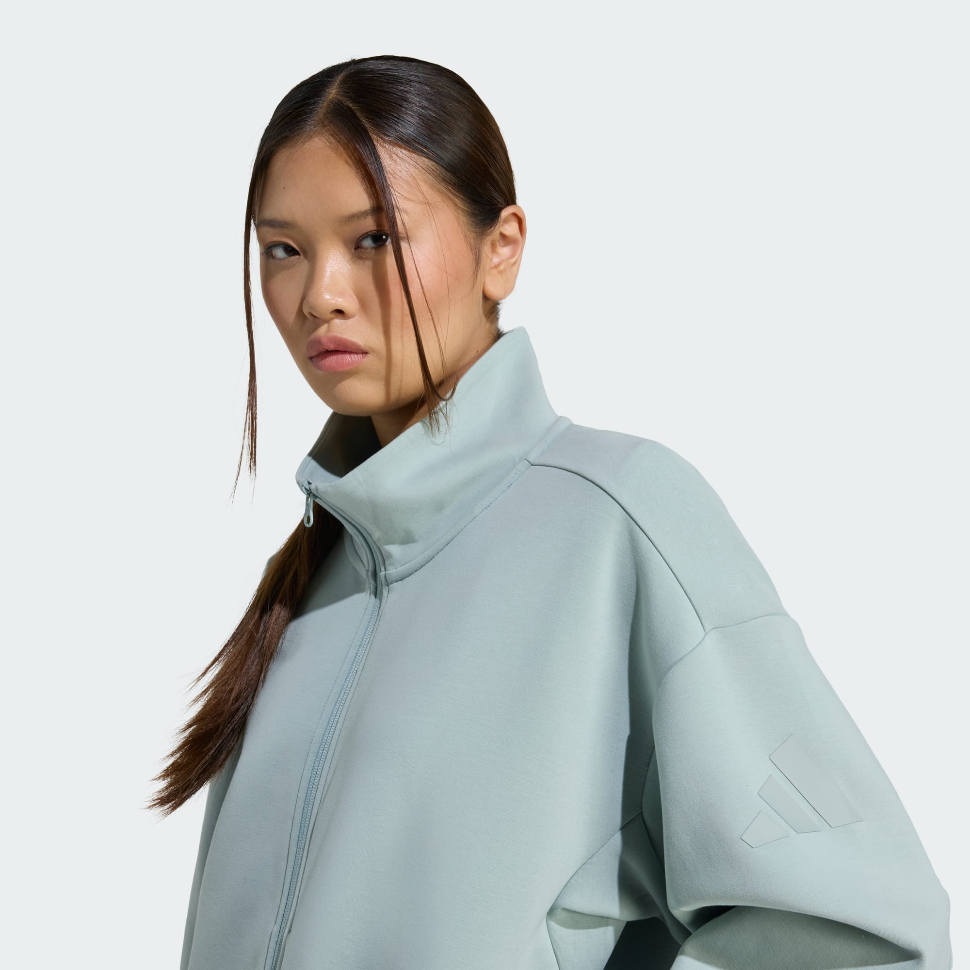 Denne adidas top med fuld lynlås er lavet af blødt materiale for en behagelig følelse. Den løse form og forlængede længde gør det til den perfekt til lag-på-lag og giver et afslappet, afslappet look. En opretstående krave og lynlås foran lader dig justere dækningen, mens du går gennem din dag.