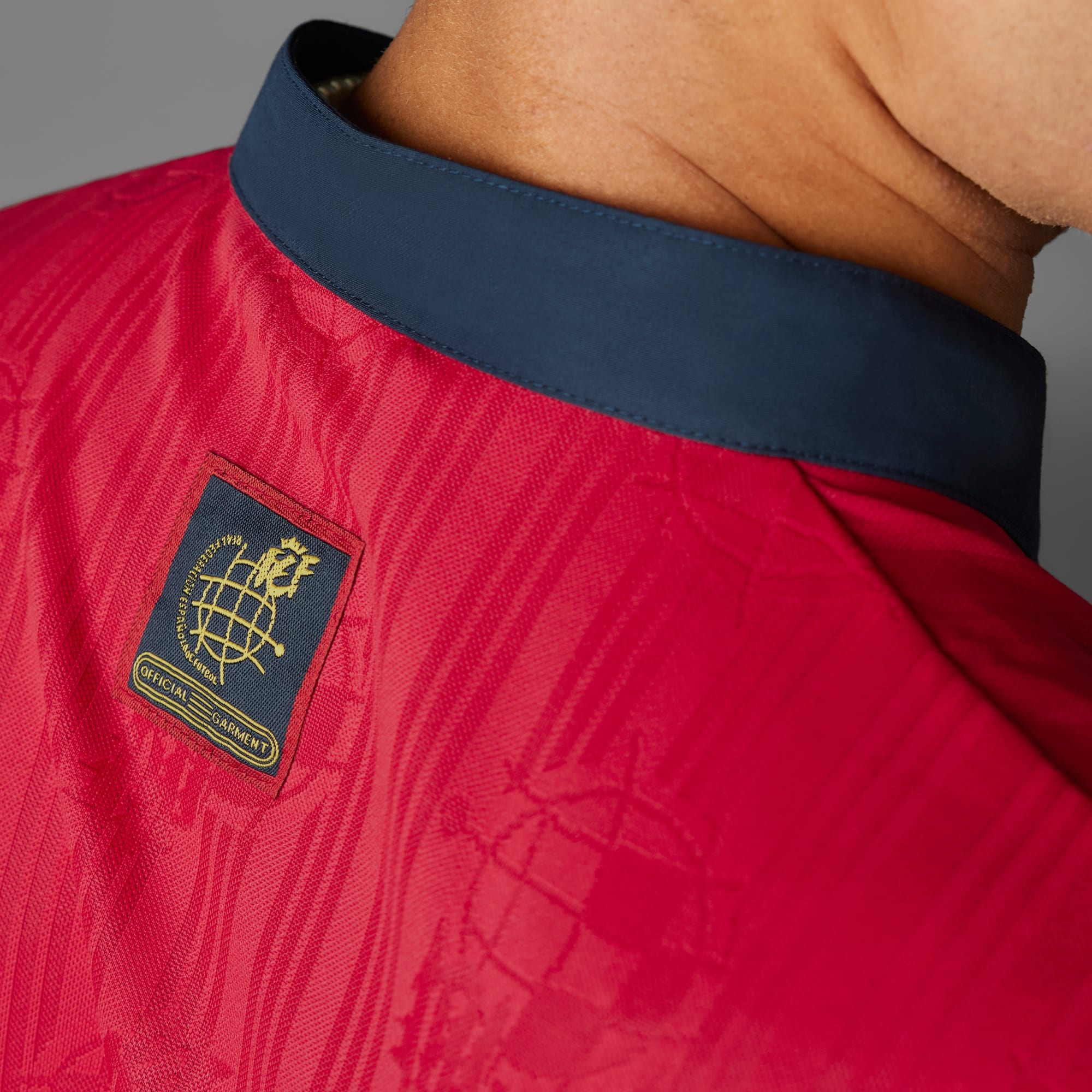 En retro Spanien-fodboldtrøje lavet med genanvendte materialer.