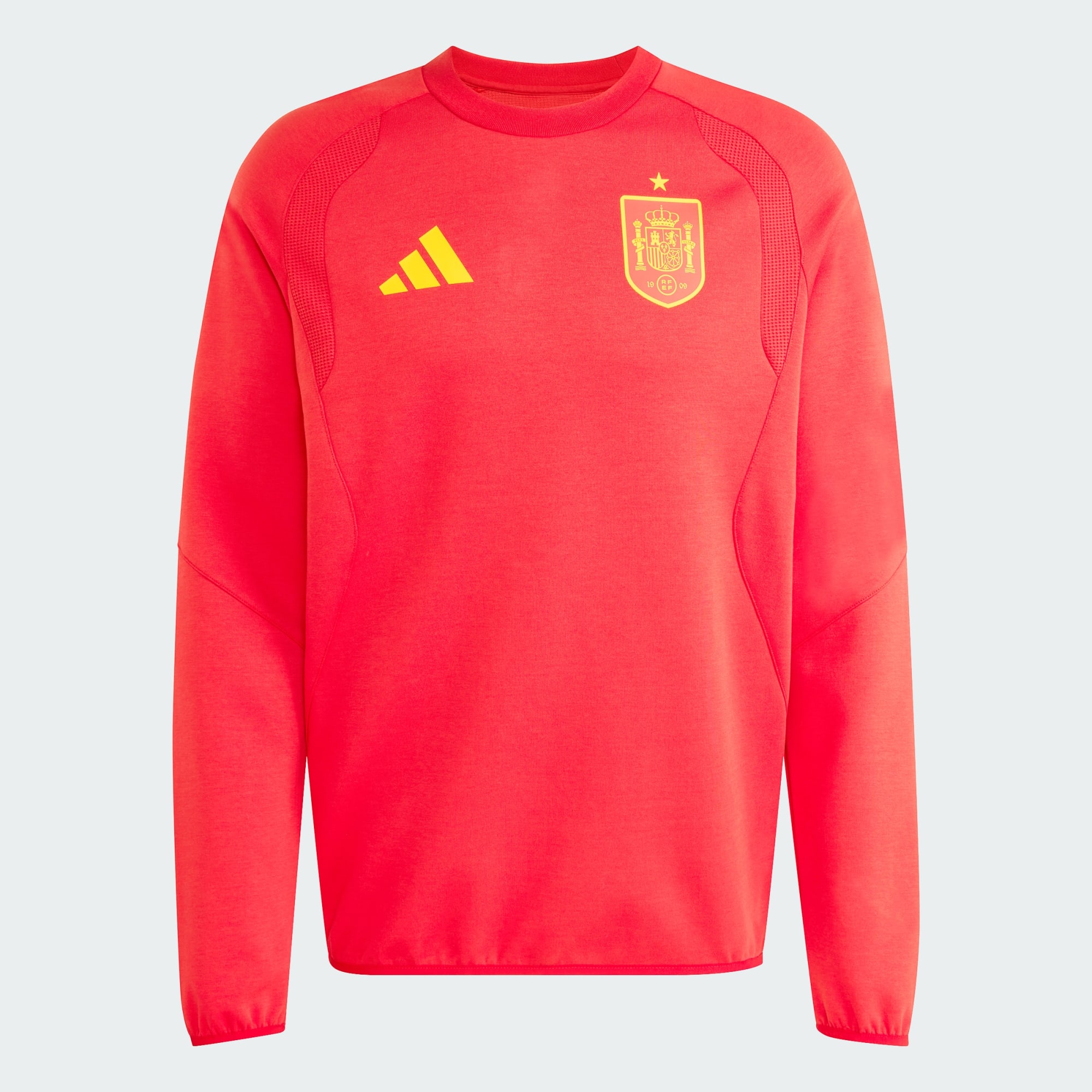 Nyd fodboldinspireret streetwear med Spanien Tiro Travel Crew-trøjen. Dette stykke tøj er skabt til dem, der sætter pris på blandingen af sport og stil, og tilbyder et rent og teknisk design, der er inspireret af den dynamiske løbeverden, samtidig med at det opretholder en fodboldcentreret pasform og følelse. Denne trøje er lavet af et spacer-materiale, og giver en behagelig fornemmelse, der er god at have på i lag på køligere dage. De ergonomiske snitlinjer skaber en behagelig pasform, der giver dig bevægelsesfrihed. Omfavn adidas' rebelske optimisme med denne trøje med rund hals, der er designet til at holde dig skarp og selvsikker.