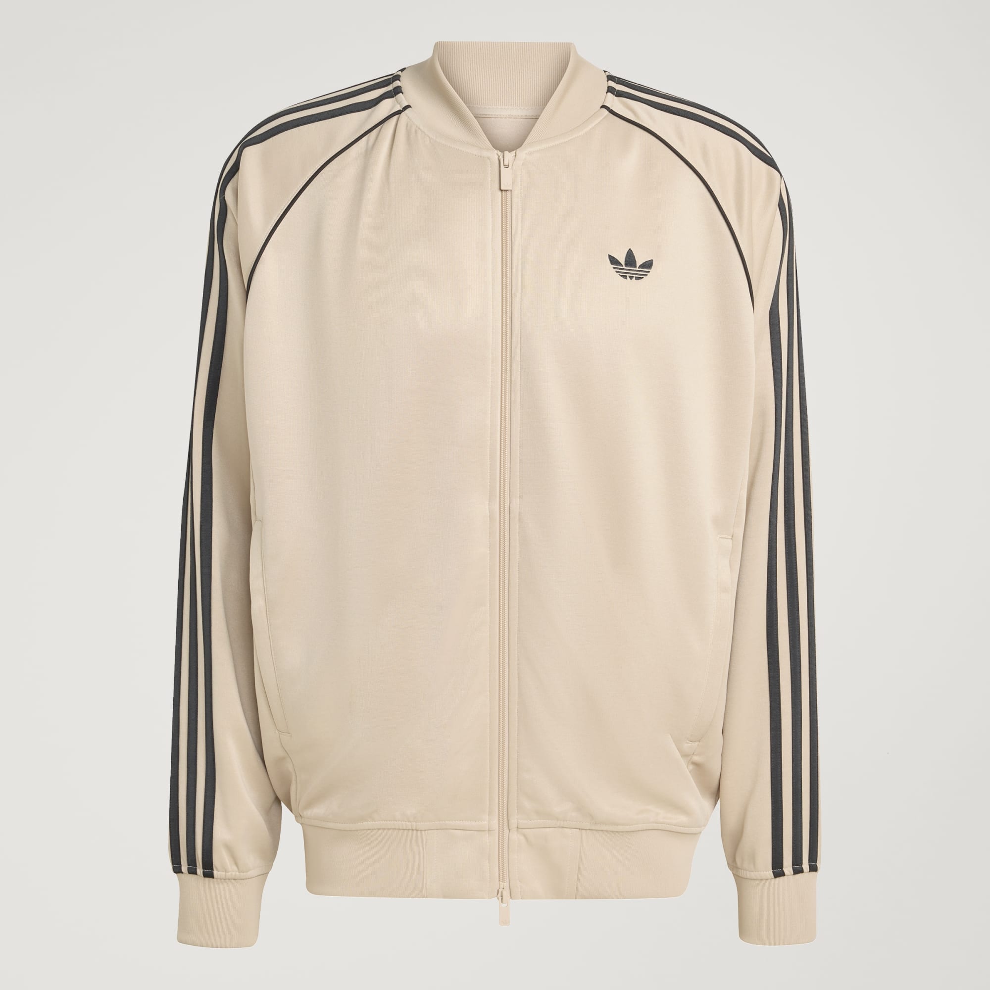 Løstsiddende træningsoverdel med ikoniske 3-Stripes og Trefoil-logo for klassisk gadestil.