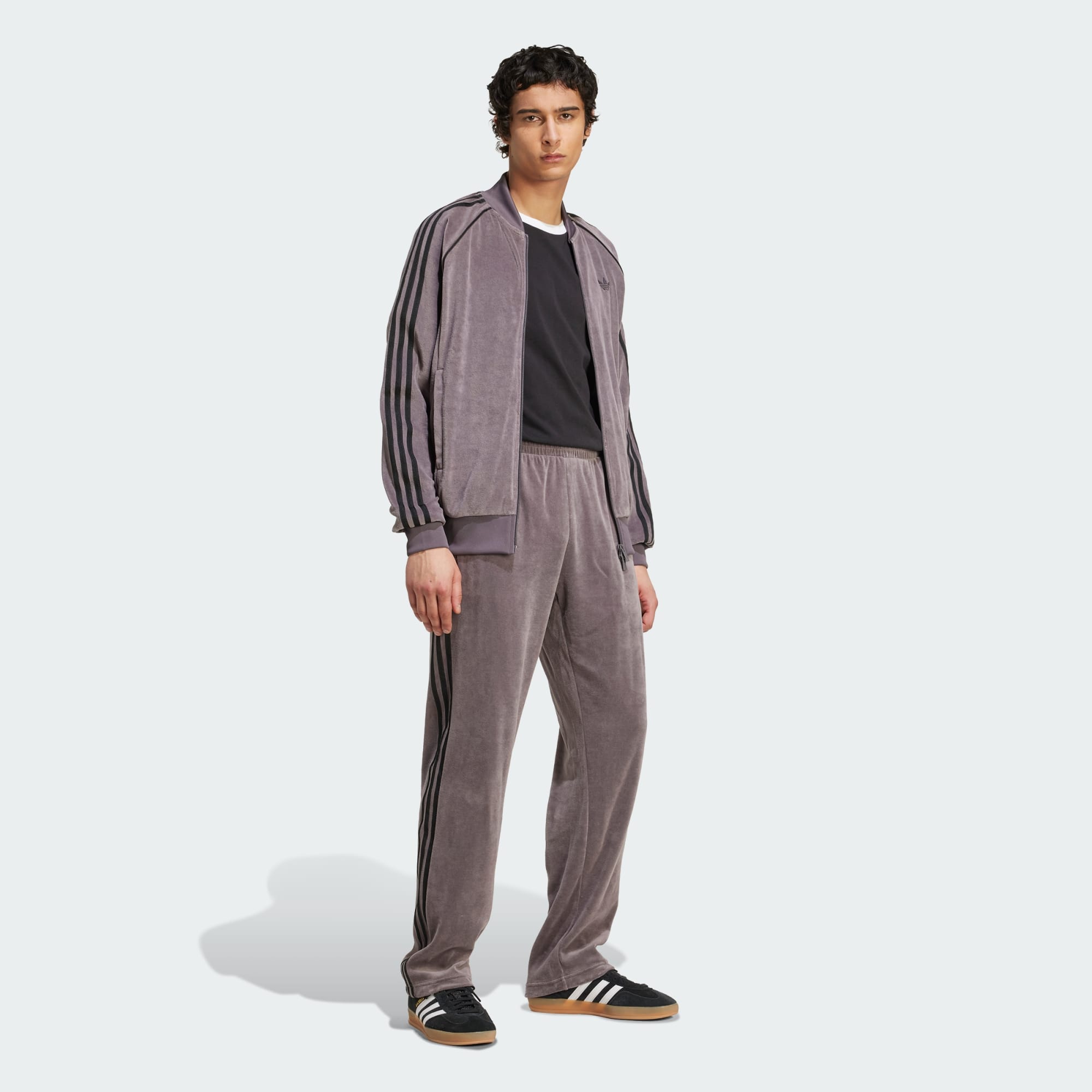 Et hverdagsprodukt får en luksuriøs opgradering. Disse adidas træningsbukser er lavet af blødt velourmateriale, der er perfekt til afslapning eller til at gå ud i. Et Trefoil-logo på hoften tilføjer et sidste touch af sporty stil.