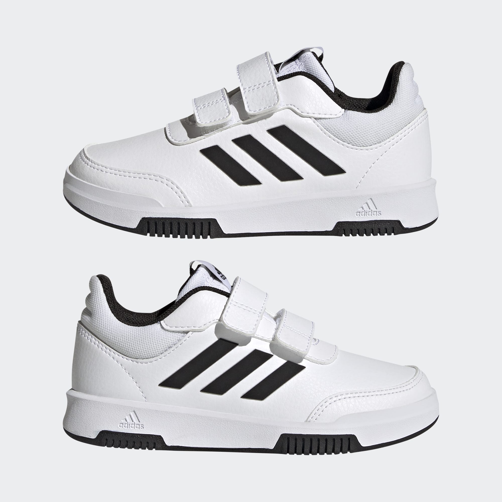 Børn drejer rundt, løber, hopper og sprinter, og de tester hele tiden deres sko. Disse sneakers fra adidas er lavet med en robust ydersål i gummi, der ikke smitter af, hvilket giver et godt greb og gulve, der efterlades præcis som de blev fundet. Og de to remme med burrebånd på hver sko er nemme at lukke til på farten. Overdelen er fremstillet med en række genanvendte materialer og har mindst 50 % genanvendt indhold. Dette produkt er et eksempel på én af vores løsninger, der hjælper med at reducere plastikaffald.
