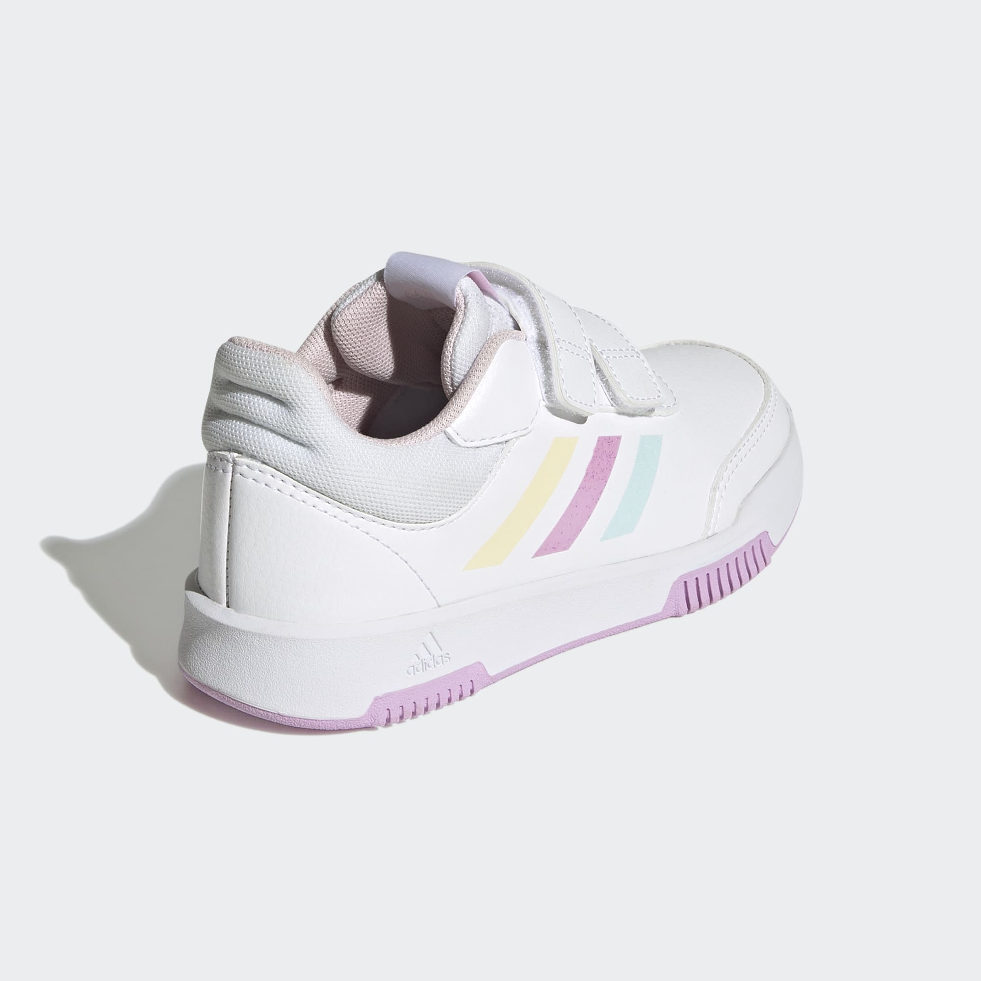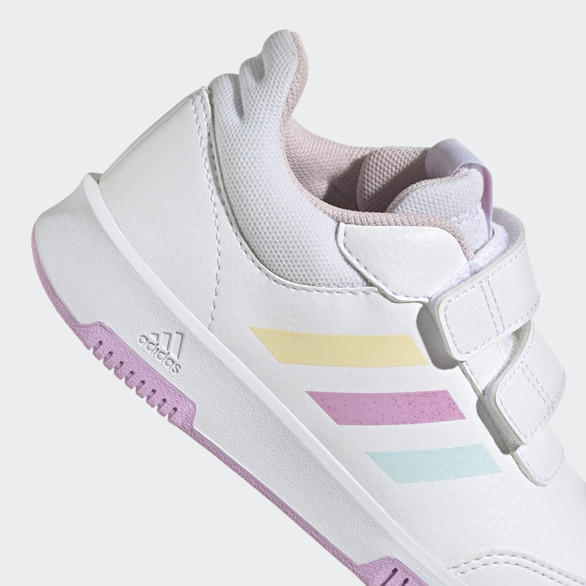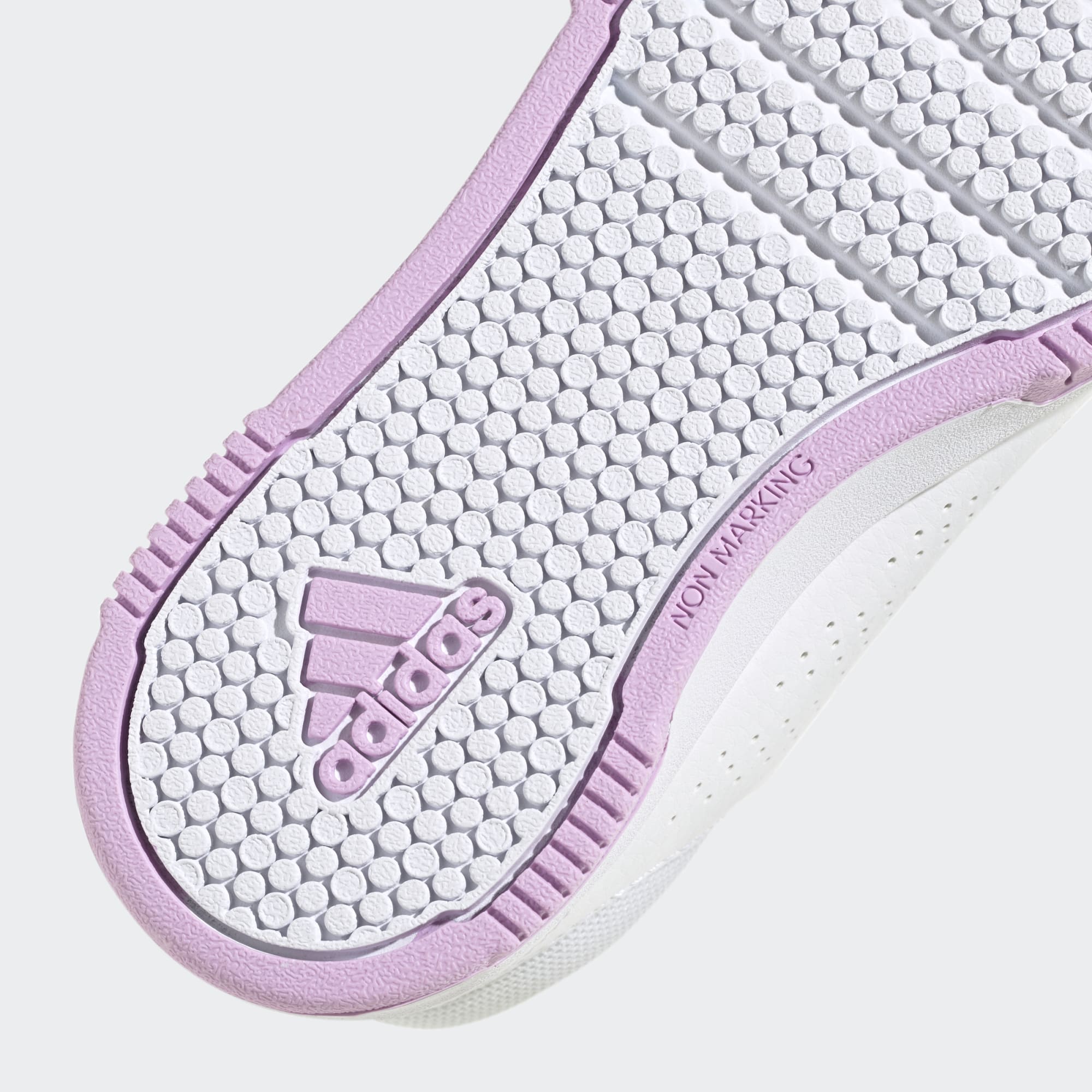 Børn drejer rundt, løber, hopper og sprinter, og de tester hele tiden deres sko. Disse sneakers fra adidas er lavet med en robust ydersål i gummi, der ikke smitter af, hvilket giver et godt greb og gulve, der efterlades præcis som de blev fundet. Og de to remme med burrebånd på hver sko er nemme at lukke til på farten. Overdelen er fremstillet med en række genanvendte materialer og har mindst 50 % genanvendt indhold. Dette produkt er et eksempel på én af vores løsninger, der hjælper med at reducere plastikaffald.