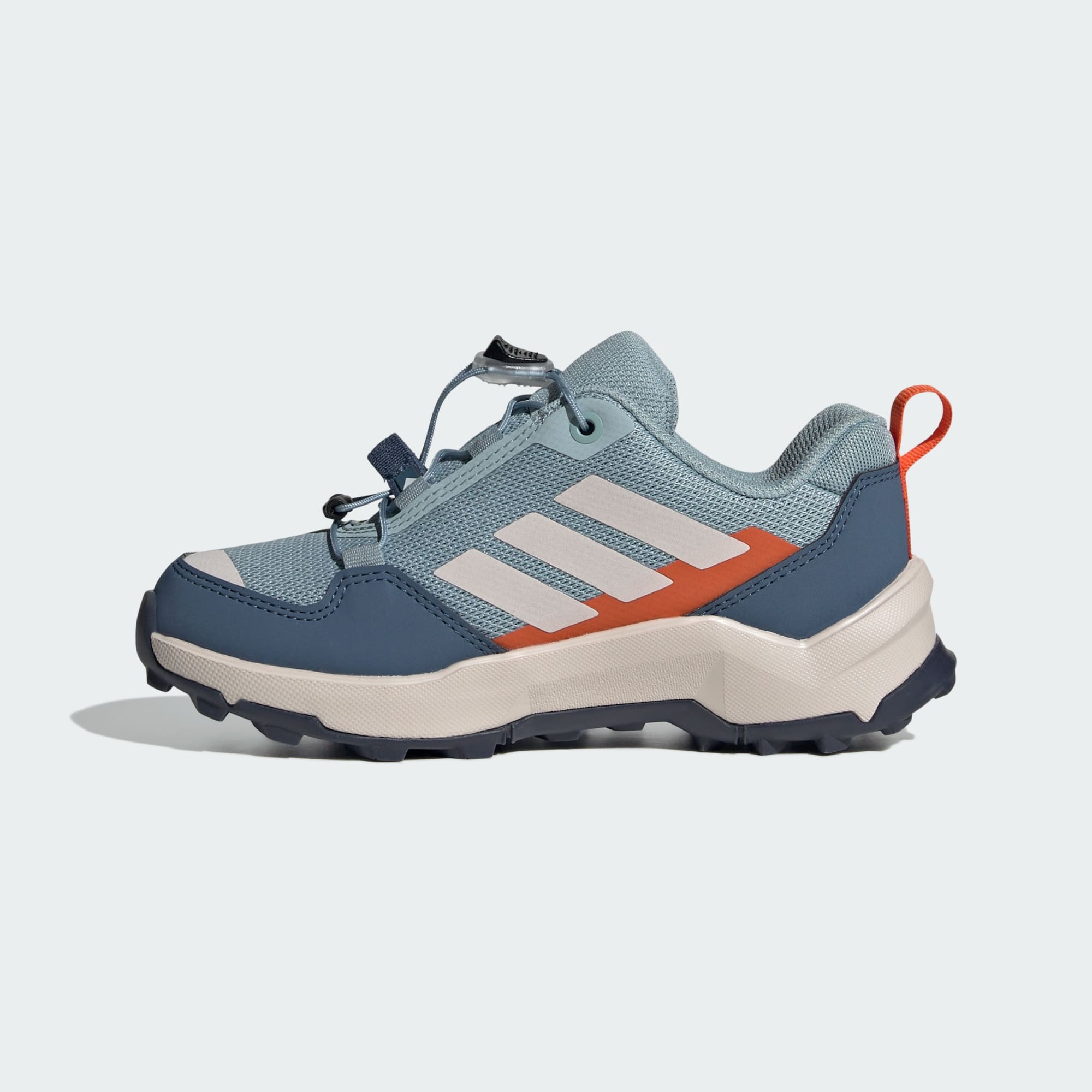 Tag på vandretur, klatr og leg. Eventyrlystne børn fortjener eventyrlystne sko. Disse Terrex-vandresko til børn fra adidas kan klare det hele. En åndbar overdel holder fødderne afkølede på varme dage, og en stødabsorberende mellemsål samt en skridsikker, rillet trædeflade balancerer komfort og greb til al slags terræn på ujævne stier. Hurtigt snøresystem lader børnene justere pasformen på farten. Adifit-måleværktøjet på indersålen sikrer den rette pasform. Ved at vælge genanvendte materialer er vi i stand til at genbruge materialer, der allerede er blevet skabt, hvilket hjælper med at reducere spild. Valg af bæredygtige materialer hjælper os også med at eliminere vores afhængighed af begrænsede ressourcer. Vores produkter er lavet i en blanding af genanvendte og fornyelige materialer og består af mindst 20 % af disse materialer.