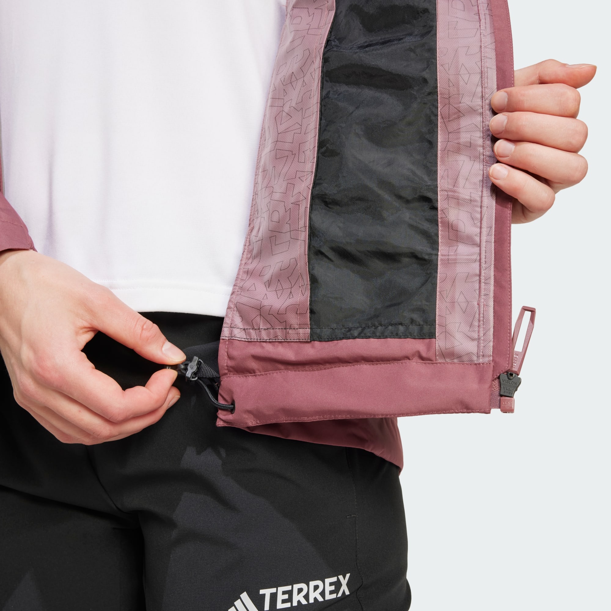 Vandring. Udforsk. Rejser. Denne Terrex-regnjakke fra adidas giver vandtæt og åndbar tildækning, og kan pakkes ned til en lille størrelse, så den er nem at opbevare i en rygsæk eller taske. RAIN.RDY holder vand ude, så du kan holde dig tør i regn og vådt vejr. Det lette design i 2,5 lag giver åndbarhed, så din krop kan regulere temperaturen, når du får varmen på vandreture. Tag den på over en fleece eller hættetrøje i koldt vejr, eller tag den på over en trøje, når regnvejret forsøger at holde dig tilbage. Når solen kommer frem, kan du pakke jakken ned i den indbyggede opbevaringslomme. Ved at vælge genanvendte materialer er vi i stand til at genbruge materialer, der allerede er blevet skabt, hvilket hjælper med at reducere affald. Valg af bæredygtige materialer hjælper os også med at eliminere vores afhængighed af begrænsede ressourcer. Vores produkter er lavet i en blanding af genanvendte og fornyelige materialer og består af mindst 70 % af disse materialer i alt.