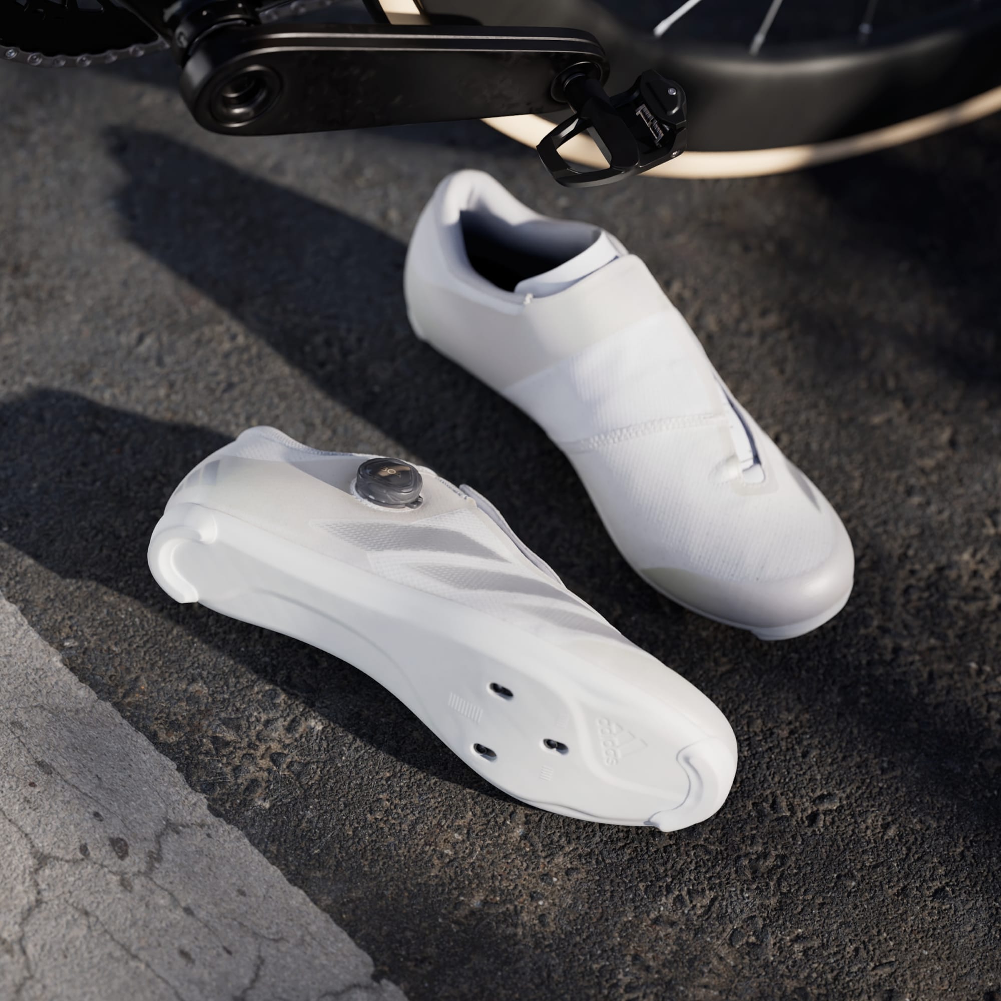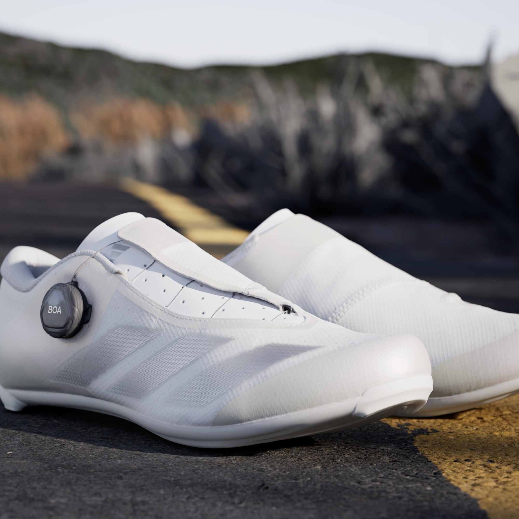 Præcision, komfort og åndbarhed. Disse Road-cykelsko fra adidas udnytter den mikrojusterbare pasform fra BOA® Fit System for at give en præcis pasform med en støttende, fodomsvøbende overdel, der prioriterer åndbarhed og komfort. Kompatibilitet med tre gevindhuller og en fiberglasforstærket mellemsål maksimerer kraftoverførslen for at skabe effektivt træd i pedalerne. Dette produkt indeholder mindst 20 % genanvendte materialer. Ved at genbruge materialer, der allerede er blevet skabt, hjælper vi med at reducere spild og vores afhængighed af begrænsede ressourcer og reducere vores produkters aftryk.