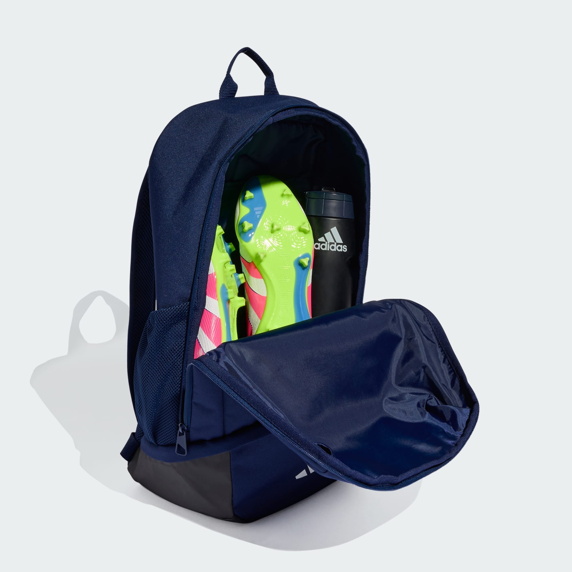 Vis din fodboldstil. De svævende 3-Stripes og det skærmtrykte 3 Bar-logo på denne rygsæk fra adidas viser din støtte til sporten. Den er en del af Tiro 23 League-kollektionen og har polstrede skulderstropper, der giver en behagelig pasform på farten. Den har endda et særligt rum til dine støvler, når du er færdig med vise dig frem i dem. Dette produkt er lavet med en række genanvendte materialer og mindst 40 % genanvendt indhold, og det er kun en af vores løsninger, der hjælper med at reducere plastikaffald.