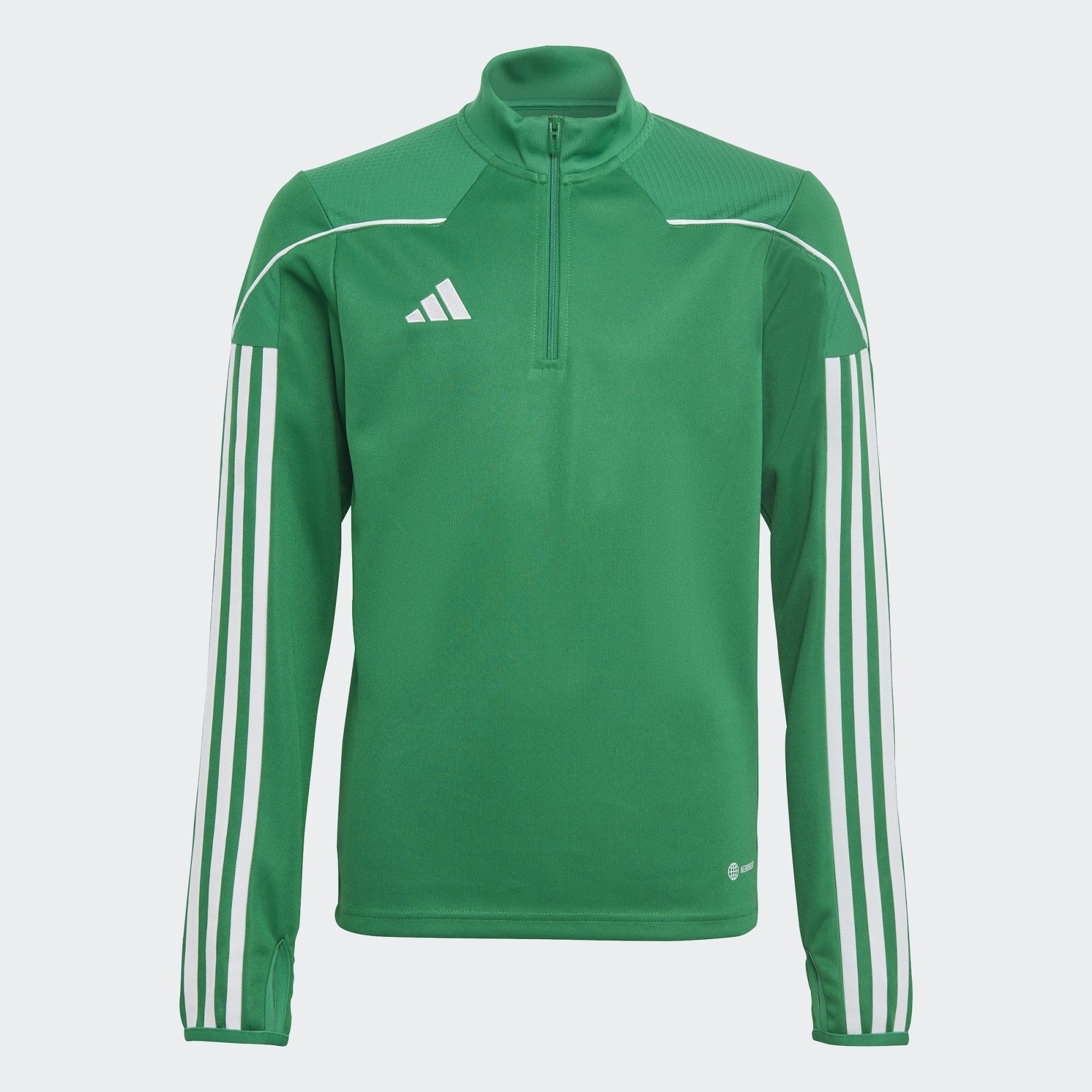Skabt til verdens smukkeste spil. Denne fodboldtop i juniorstørrelse er en del af Tiro 23 League-kollektionen og er lige, hvad du skal bruge, når du trænger til et skub på træningsbanen. Den har en slank pasform til hurtigt spil og huller til tommelfingrene, så du kan trække de lange ærmer over dine hænder. Som du forventer fra adidas, er den fugtabsorberende AEROREADY standard, så den ekstra tildækning ikke påvirker din komfortniveau. Dette produkt er fremstillet af 100 % genanvendte materialer og er en af vores løsninger, der hjælper med at reducere plastikaffald.