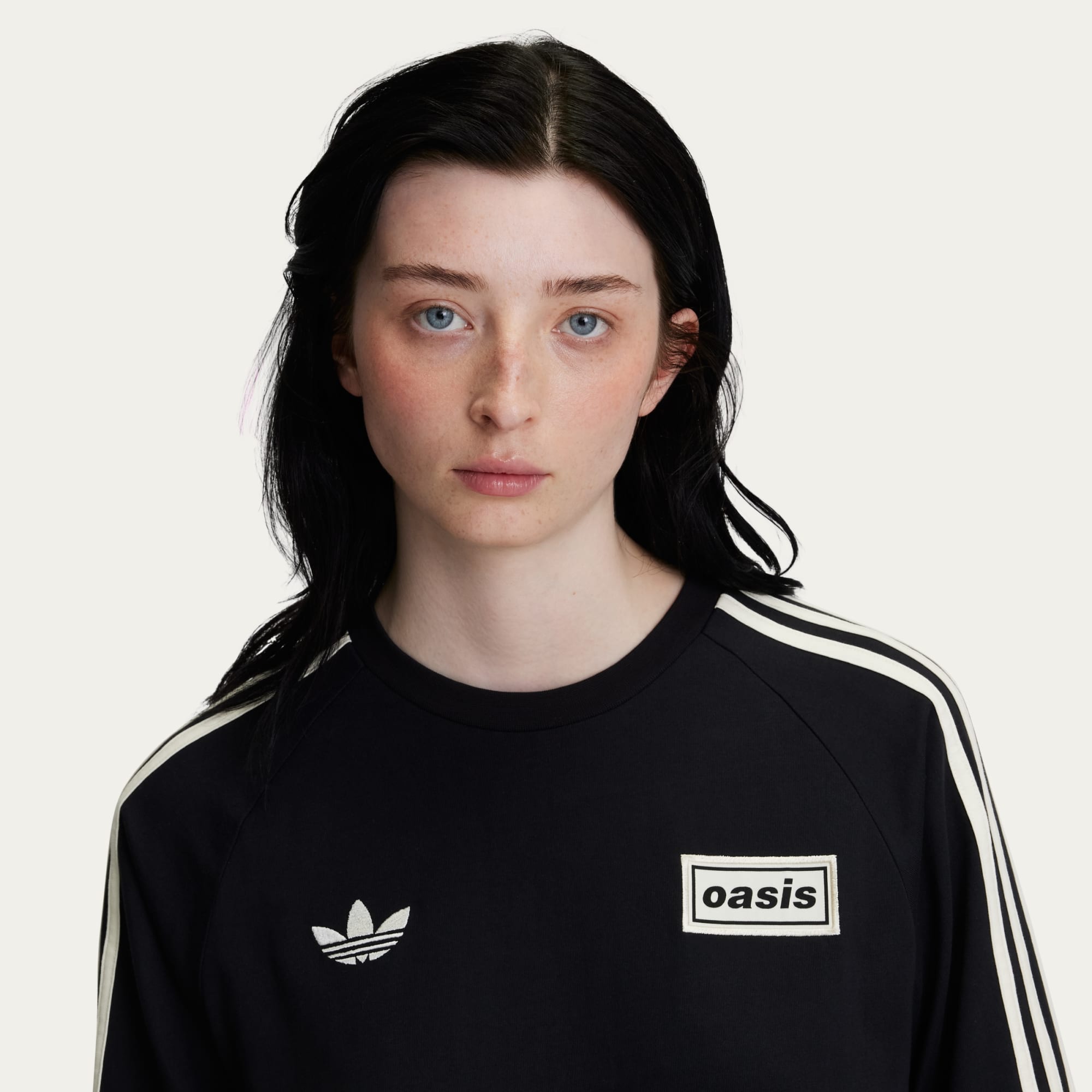 Vintage-inspireret, langærmet T-shirt fra The Band With The 3 Stripes med adidas Originals x Oasis-branding.
