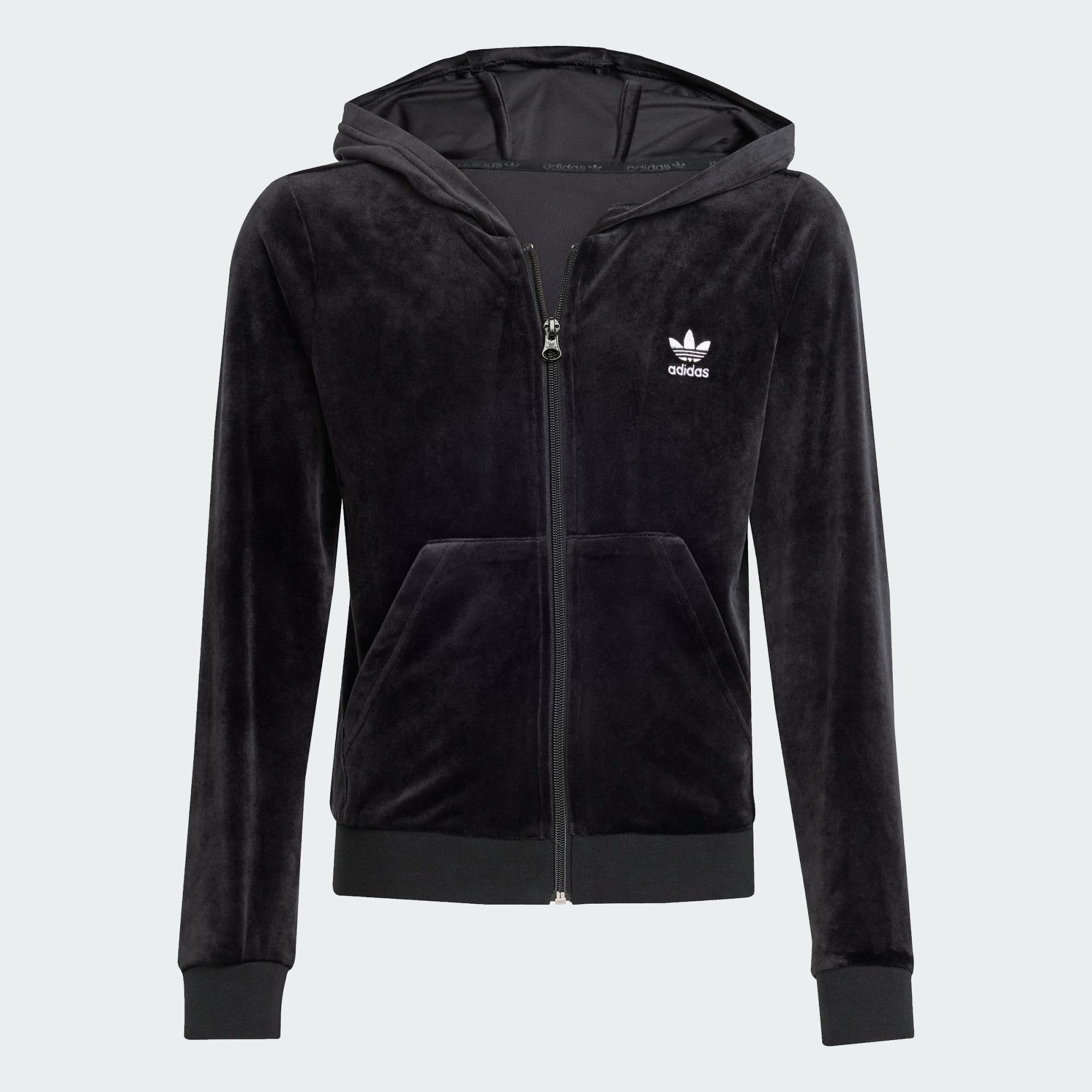 Denne juniorhættetrøje fra adidas er lige så blød og behagelig, som den ser ud. Den er fremstillet af blødt velour og er perfekt til at slappe af eller til når du er på farten. Den slanke pasform giver en elegant silhuet. Det ikoniske Trefoil-logo på brystet giver den en sporty stil.