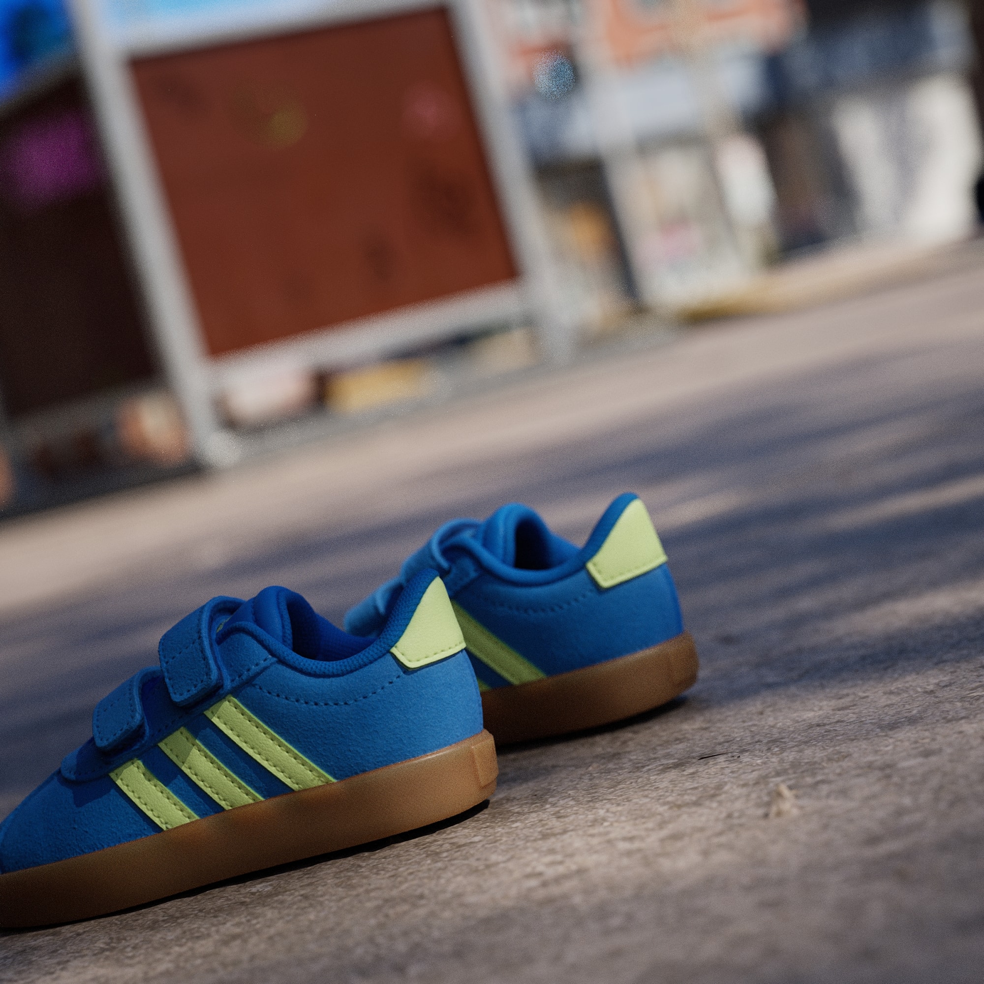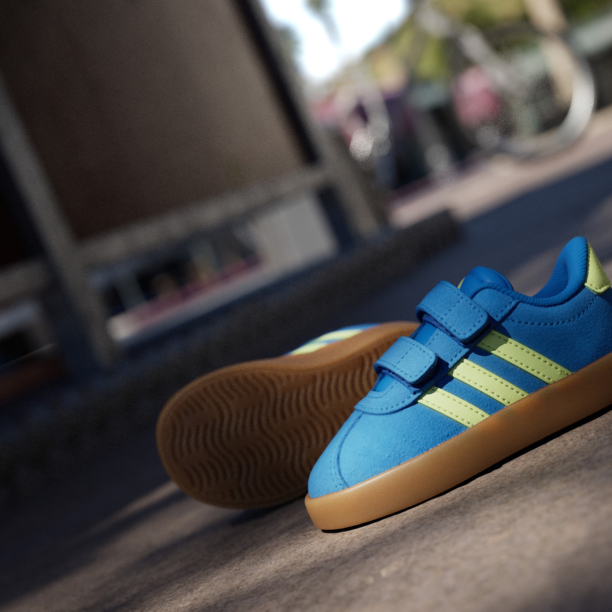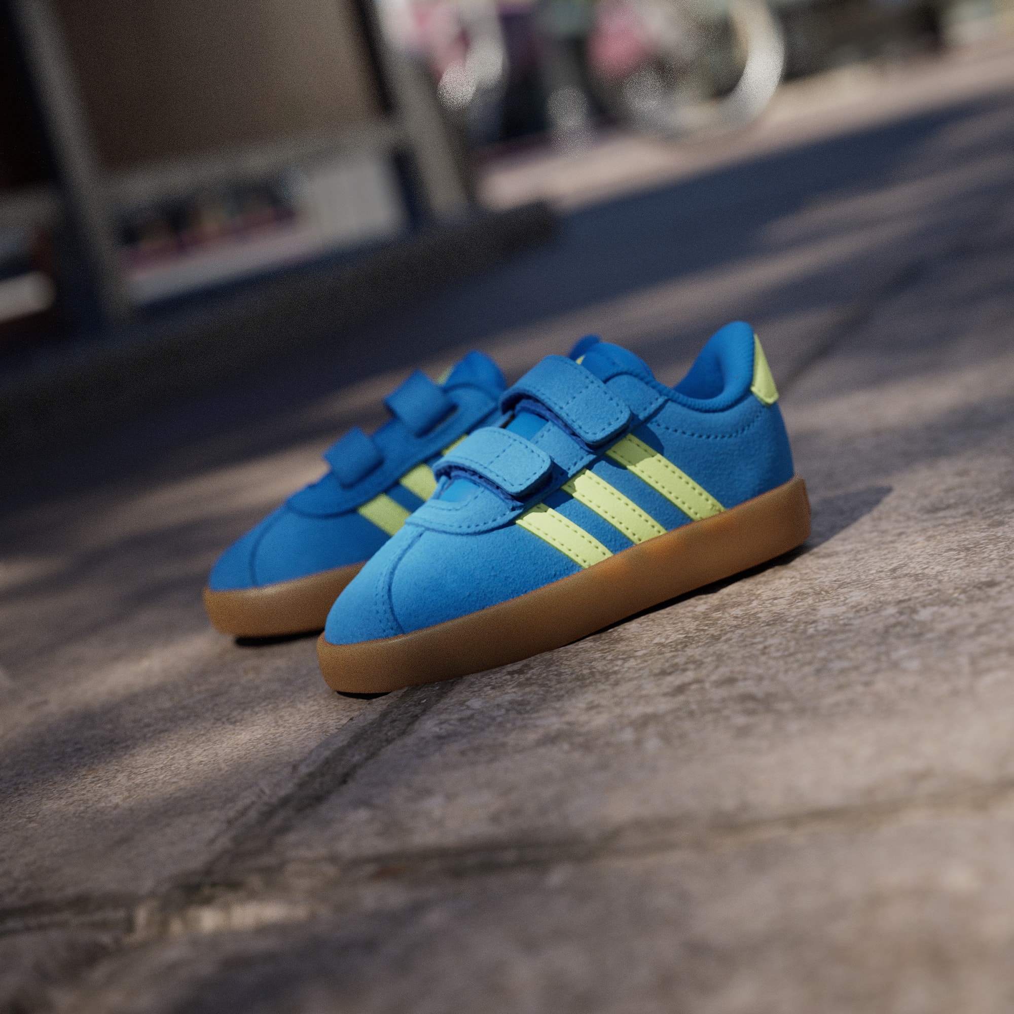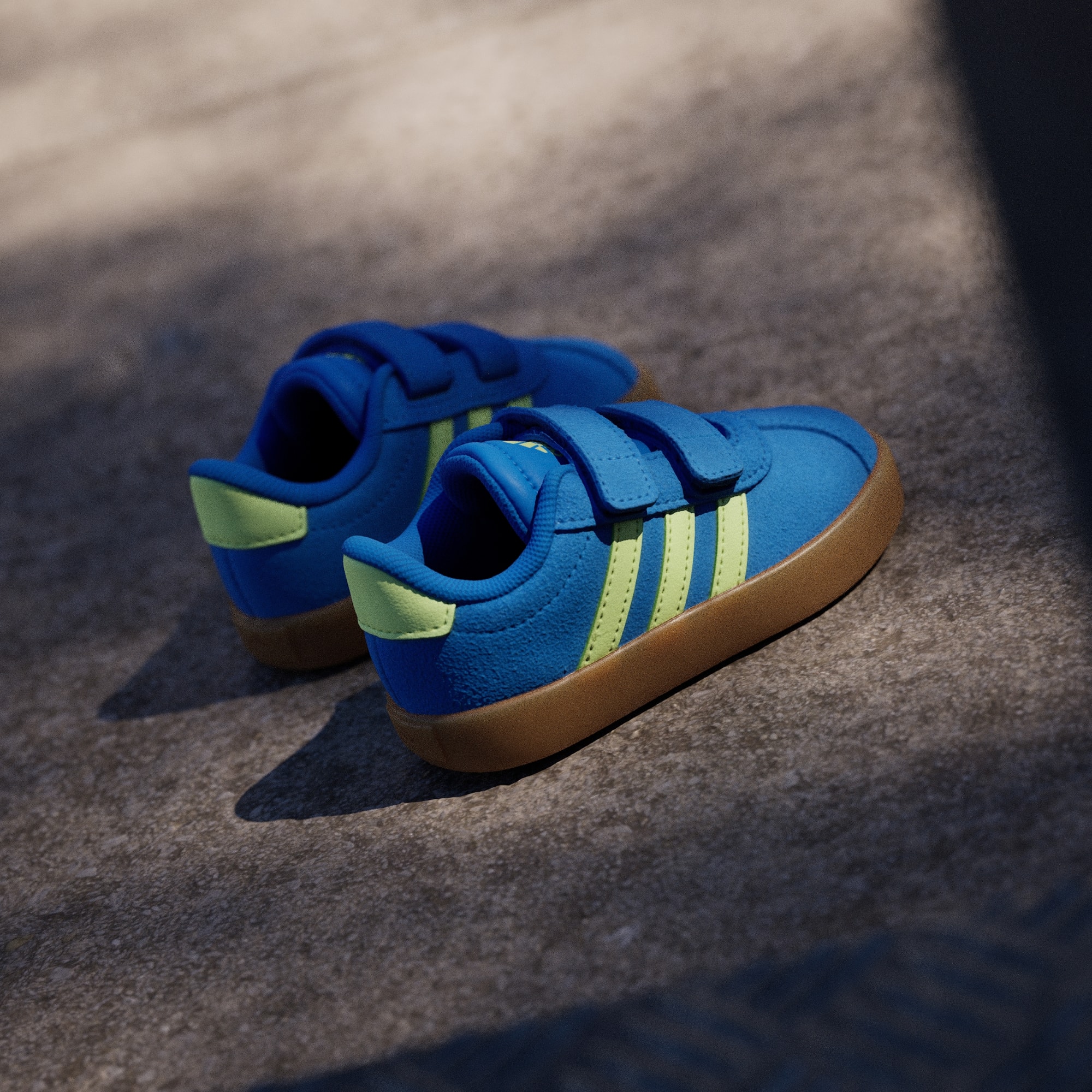 Klar til eventyr. Disse adidas-sko til småbørn har justerbare remme med burrebånd, så du kan få dem af og på, på et splitsekund, og er perfekte til fødder, der ikke har lyst til at forblive siddende. En syntetisk overdel, tekstilfor og en vulkaniseret ydersål i gummi forenes for at holde deres fødder veltilpasse, uanset om de lærer at stå, skate eller lege.