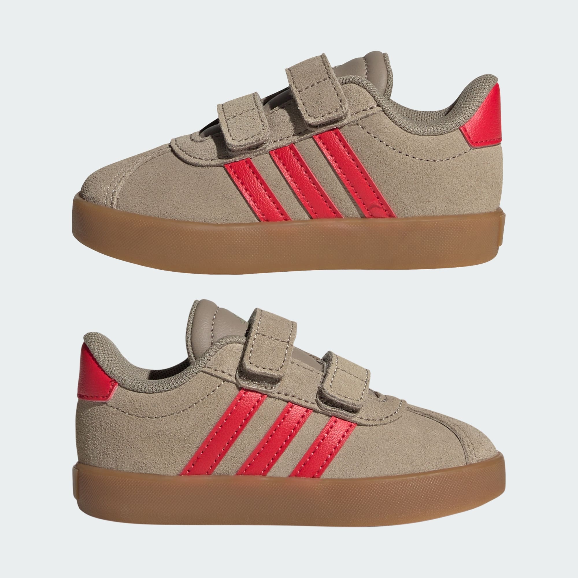 Klar til eventyr. Disse adidas-sko til småbørn har justerbare remme med burrebånd, så du kan få dem af og på, på et splitsekund, og er perfekte til fødder, der ikke har lyst til at forblive siddende. En syntetisk overdel, tekstilfor og en vulkaniseret ydersål i gummi forenes for at holde deres fødder veltilpasse, uanset om de lærer at stå, skate eller lege.