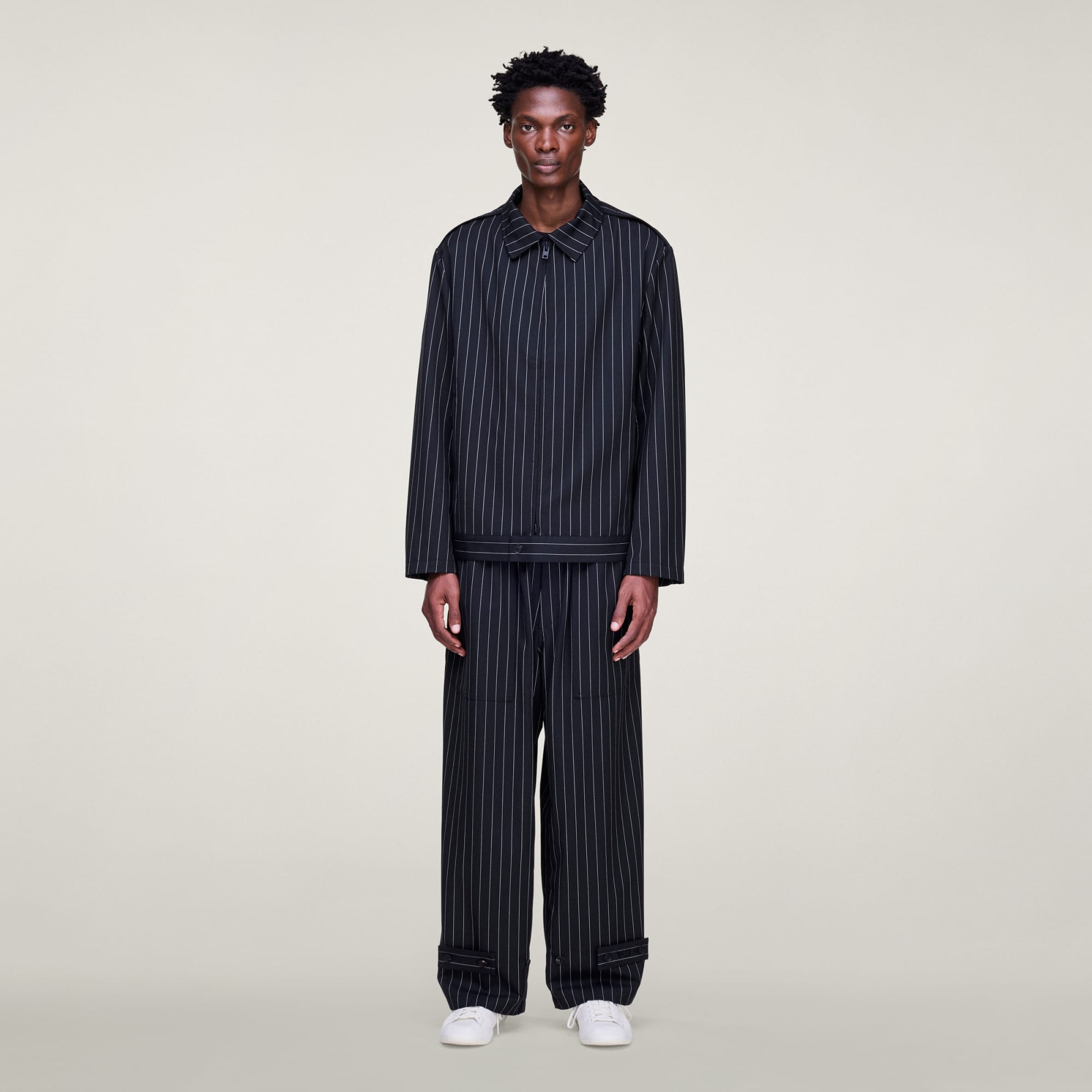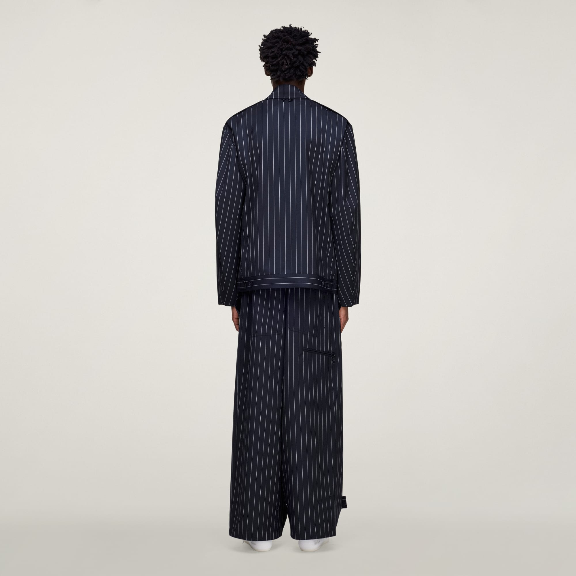 Y-3 PINSTRIPE REFINED WOOL WIDE LEG BUKSER