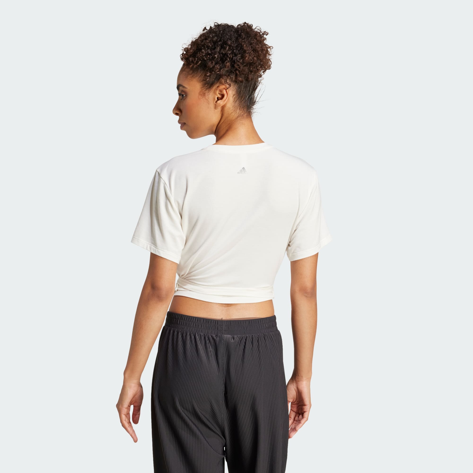 Denne yoga-T-shirt følger dine bevægelser igennem enhver stilling. Det bløde stof holder dig godt tilpas, mens du koncentrerer dit sind og din krop. adidas AEROREADY holder dig tør, uanset hvor varmt rummet bliver. En afkortet længde og en wrap-round-stil lader dig tilpasse tildækningen. Dette produkt er lavet med mindst 70 % genanvendte materialer. Ved at genbruge materialer, der allerede er blevet skabt, hjælper vi med at reducere spild og vores afhængighed af begrænsede ressourcer, og reducerer vores produkters aftryk.
